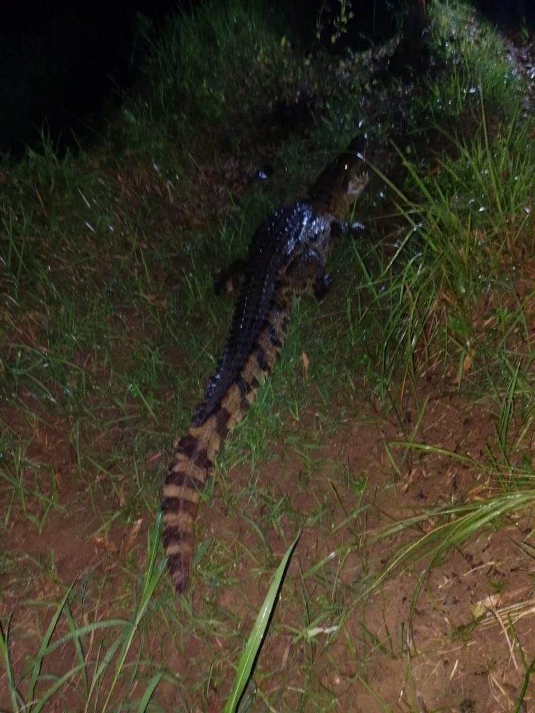 बिजनौर के किरतपुर इलाके में तालाब से निकलकर एक बड़ा मगरमच्छ आबादी क्षेत्र में घुस आया। मगरमच्छ को देखकर ग्रामीणों में हड़कम्प मच गया। मौके पर स्थानीय लोगों की भारी भीड़ जमा हो गई। काफी मशक्कत के बाद ग्रामीणों ने मगरमच्छ को रस्सी से जकड़ लिया और गांव में एक बेंच से बांध दिया।दरअसल यह पूरा मामला बिजनौर के किरतपुर इलाके के ग्राम दरगोपुर का है। जहां रात के समय तालाब से निकलकर आबादी इलाके में एक विशाल मगरमच्छ घुस आया। गांव में आबादी क्षेत्र में घुसे मगरमच्छ को देख कर ग्रामीणों के होश उड़ गए। आसपास के काफी लोगों की भीड़ मौके पर जमा हो गई। ग्रामीणों की भीड़ के शोर मचाने पर मगरमच्छ गन्ने के खेत में भागने लगा। कई ग्रमीणों ने हिम्मत दिखाते हुए कड़ी मशक्क्त के बाद मगरमछ को मोटी रस्सी से बांध दिया और लाठी डंडे के सहारे उसे गांव में बनी बैठने वाली एक बेंच से बांध दिया। गनीमत रही कि मगरमछ ने किसी पर हमला नहीं किया वरना कोई बड़ा हादसा भी हो सकता था। ग्रामीणों का कहना है कि सूचना देने के बाद भी काफी देर के बाद वन विभाग की टीम मौके पर पहुंची। मगरमच्छ को रेस्क्यू कर पकड़ कर उसे सुरक्षित अपने साथ नदी या तालाब में छोड़ने के लिए ले गई।