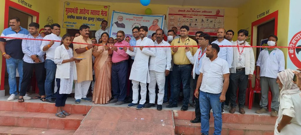 जनता को स्वास्थ्य सुविधाएं देने के खास उद्देश्य से आयोजित चलाई जा रही आयुष्मान भब: योजना के अंतर्गत आज प्रा. स्वास्थ्य केंद्र बुढ़नपुर में स्वास्थ्य मेले का भव्य उद्घाटन ब्लाक प्रमुख आकांशा चोहान,भाजपा नेता विनीत देवरा,देशबंधु चोहान व सीएचसी प्रभारी डॉ विशाल दिवाकर द्वारा फीता काटकर किया गया।ज़्यादा जानकारी देते हुए डॉ विशाल दिवाकर ने बताया कि इस स्वास्थ्य मेले में सभी को विभिन्न प्रकार की जांचे,दवाई मिलेगी तो साथ ही आयुष्मान कार्ड भी बनाये जाएंगे उन्होंने सभी से इस स्वास्थ्य मेले में आकर स्वास्थ्य लाभ लेने की अपील की है।इस मौके पर तमाम भाजपा नेता व स्वास्थ्य कर्मी मोजूद रहे।