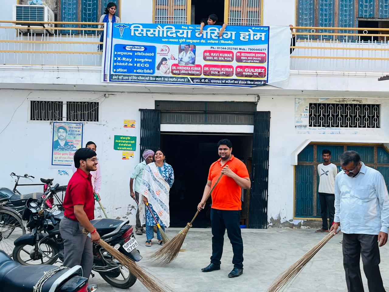 बिजनौर/स्योहारा – स्योहारा के प्रसिद्ध नर्सिंग होम ठाकुरद्वारा रोड स्थित सिसोदिया नर्सिंग होम के डॉक्टर वीरेंद्र कुमार सिसोदिया डॉ रवि सिसोदिया डॉ मीनाक्षी सिसोदिया ने अपने समस्त स्टाफ 26 सितंबर से 2 अक्टूबर 154 घंटे महा सफाई अभियान स्वच्छता ही सेवा चलाए जा रहे हैं पूरे भारत भर में सफाई अभियान चल रहा सफाई अभियान मे भाग लेते हुए डॉक्टर मीनाक्षी सिसोदिया ने बताया कि अपने नगर को साफ और स्वच्छ रखें आपका शहर साफ स्वच्छ होगा तो बीमारियों से भी उसका बचाव होगा गंदगी से बीमारी फैलती है इससे मलेरिया डेंगू टाइफाइड काला पीलिया हमें बीमारियां उत्पन्न होती है सभी देशवासियों को यह संकल्प लेना चाहिए कि अपने देश को साफ स्वच्छ बनाना है और बीमारियों को दूर भगाना है।