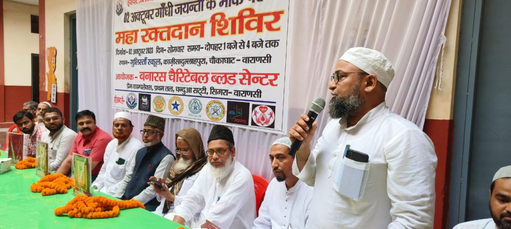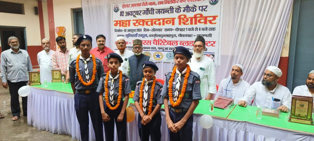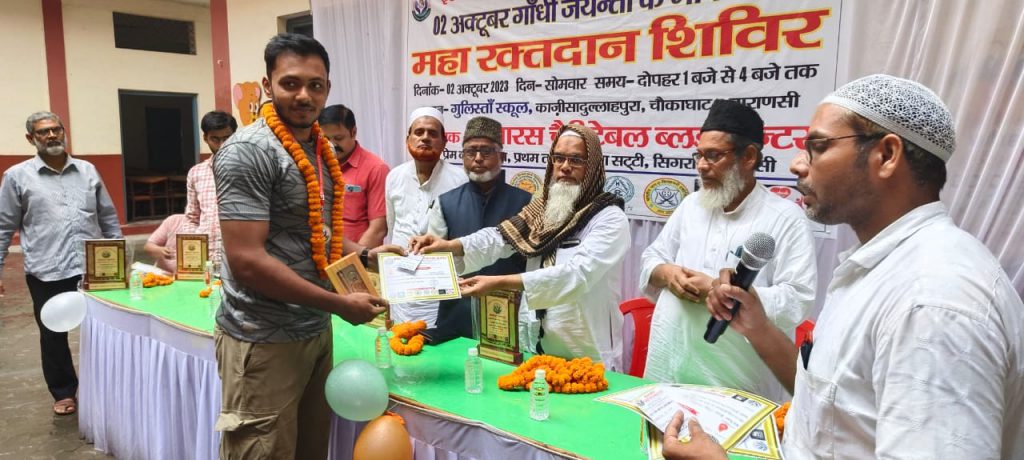 आज दिनांक 2 अक्टूबर 2023 दिन सोमवार दोपहर 1 बजे गुलिस्तां स्कूल के प्रांगण में हाजी इस्तियाक अहमद, बनारस चैरिटेबल ब्लड सेंटर वाराणसी की जानिब से गांधी जयंती के उपलक्षय में “रक्तदान महादान, आओ जिंदगी बचाएं” के नाम से एक ब्लड डोनेशन कैंप का आयोजन किया गया । जिसमें लगभग 25 रक्तविरों ने अपना ब्लड दान किया और 10 से ज्यादा लोगों ने भविष्य में डोनटे करने के लिए रजिस्ट्रेशन कराया । एक तरफ बारिश होती रही और दूसरी तरफ रक्तवीर दानी आते रहे यह हौसला और समाज सेवा का जुनून देख प्रांगण में मौजूद खाश-ओ-आम आश्चर्यचकित रह गए । मुख्य अतिथि मुफ्ती ए शहर बनारस मौलाना अब्दुल बातिन नोमानी साहब रहे । प्रोग्राम की सदारत सरदार हाफिज मोइनुद्दीन, बुनकर बिरादराना तंजीम बाईसी कमेटी ने की संचालन का काम मोहम्मद शाहिद सेक्रेटरी मरियम फ़ाउंडेशन ने किया । सहयोगी संस्थाओं में मानव रक्त फाऊंडेशन, जमीयतुल अल अंसार, आज़ाद हिंद रिलीफ सोसाइटी, मरियम फाऊंडेशन, जमात ए इस्लामी हिंद, भारतीय फन ए सिपाहगिरि एसोसिएशन, मानवाधिकार जनकल्याण समिति व कई अन्य संस्थाओं ने मिल कर हिस्सा लिया lमुख्यरूप से अब्दुल मोबीन प्रबंधक, इशरत उस्मानी, असलम खलिफा, अब्दुल्लाह खालिद, अबू हाशिम, अली हुसैन, ताहिर शम्स, शाहीन अख्तर, मास्टर शहाबुद्दीन, हाजी मोहम्मद सोवालेह, मोअज्जम अंसारी, प्रमोद जी, जुल्फिकार एली, अब्दुल्लाह कलाम आदि लोग मौजूद रहे l