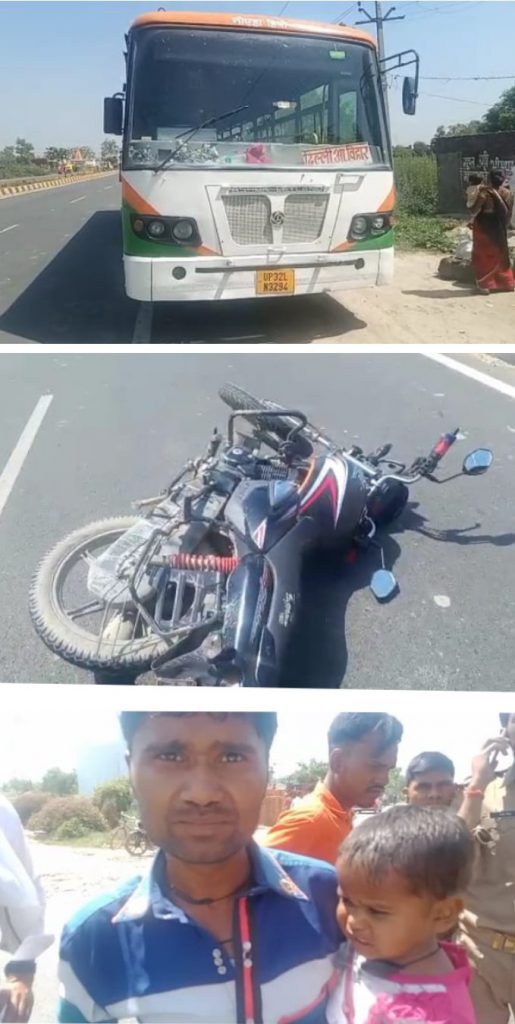 घटना दोपहर 1:00 बजे के लगभग की है। थाना जरीफनगर क्षेत्र के गांव पडरिया के वर्तमान प्रधान का बेटा राजेश कुमार मिल्क अल्लीपुर साले की लग्न में शामिल होने जा रहा था। राजेश अपनी पत्नी मीना और दो बच्चों के साथ टीवीएस बाइक से अपनी ससुराल जा रहा था। जरीफनगर थाने से कुछ ही दूरी पर बदायूं की ओर से तेज रफ्तार में आ रही रोडवेज नोएडा डिपो UP32LN3294 ने राजेश की बाइक में पीछे से जोरदार टक्कर मार दी। टक्कर लगने से राजेश की पत्नी मीना व 1 वर्षीय मासूम बेटा उछलकर रोडवेज बस के नीचे जा गिरे और पत्नी मीना व मासूम बेटे की घटनास्थल पर ही मौत हो गई । राजेश कुमार व एक बेटी बाल-बाल बच गए। मौके पर मौजूद लोगों ने जिसकी सूचना जरीफनगर पुलिस को दी सूचना पर पहुंची पुलिस ने बदायूं मेरठ हाईवे पर लगे जाम को खुलबाया। शव और रोडवेज बस दोनों को पुलिस ने अपने कब्जे में ले लिया।