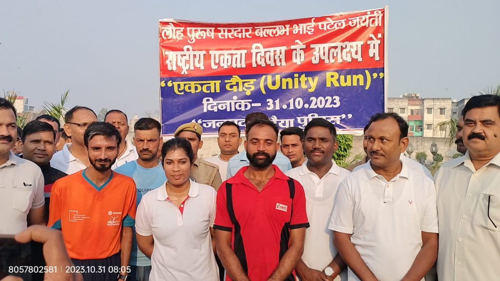 औरैया।जनपद औरैया में पुलिस अधीक्षक चारू निगम की अध्यक्षता में लोह पुरुष सरदार वल्लभभाई पटेल की जयंती एवं राष्ट्रीय एकता दिवस के उपलक्ष में एकता दौड़ का आयोजन किया गया इस दौड़ का उद्देश्य लोगों में एकता और अखंडता तथा शारीरिक दक्षता को स्वस्थ रखने के उपलक्ष में कराई गई प्रतियोगिता, पुलिस अधीक्षक चारू निगम ने बताया कि जनपद औरैया में प्रति माह इसी तरह की एक प्रतियोगिता अवश्य होनी चाहिए जिससे शरीर को स्वस्थ बनाए रखा जा सके।