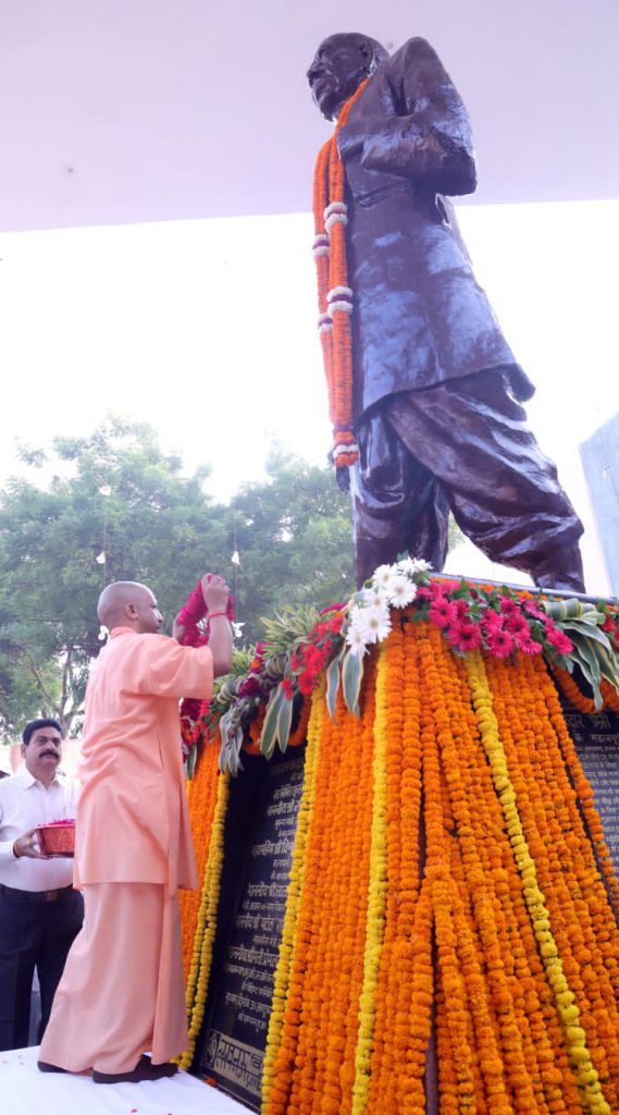 रक्षा मंत्री, भारत सरकार राजनाथ सिंह एवं उत्तर प्रदेश के मुख्यमंत्री योगी आदित्यनाथ ने आज यहां जी0पी0ओ0 स्थित सरदार वल्लभ भाई पटेल पार्क में भारत रत्न लौह पुरुष सरदार वल्लभ भाई पटेल की जयन्ती ‘राष्ट्रीय एकता दिवस’ पर उनकी प्रतिमा पर माल्यार्पण कर उन्हें श्रद्धांजलि अर्पित की। इस अवसर पर केन्द्रीय रक्षा मंत्री ने ‘रन फाॅर यूनिटी’ एकता दौड़ का फ्लैग आॅफ किया। मुख्यमंत्री ने उपस्थित लोगों को ‘राष्ट्रीय एकता दिवस’ की शपथ दिलायी।