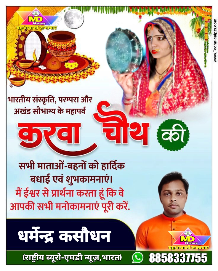 ‘बहुआयामी समाचार के तरफ से सभी माताओं बहनों को अखण्ड सौभाग्य का महापर्व करवा चौथ की हार्दिक शुभकामनाएं।“