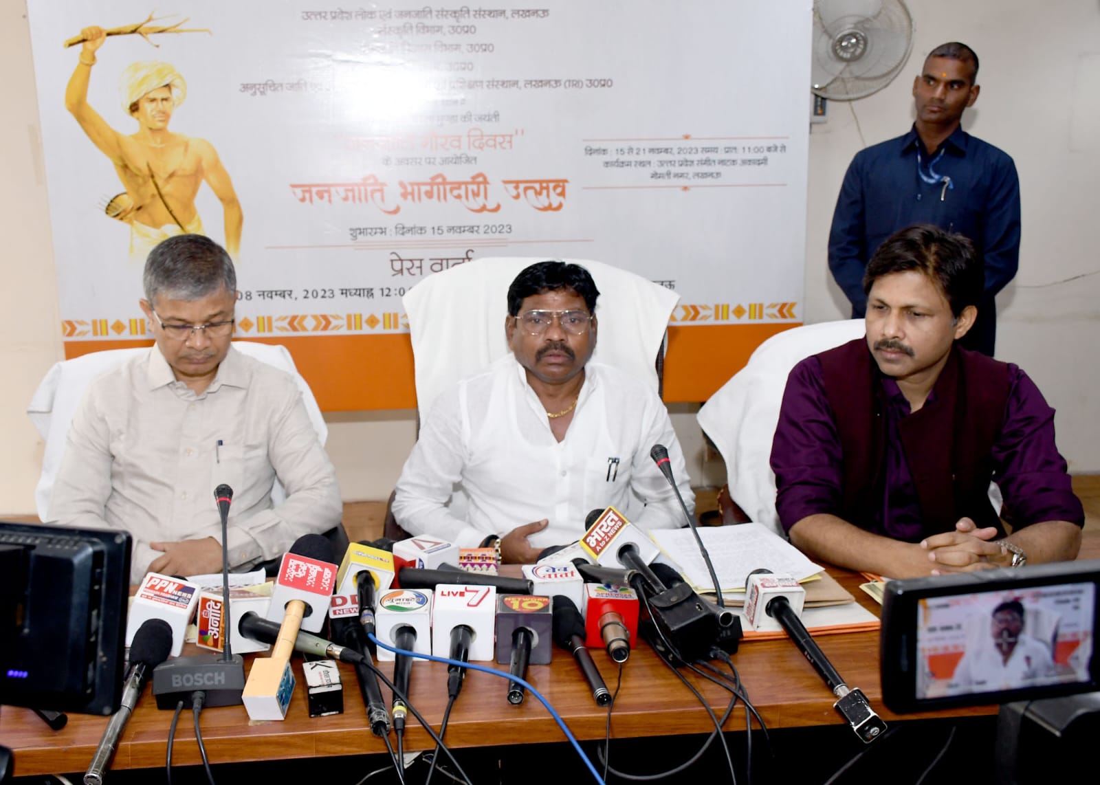 राज्यमंत्री ने कहा कि राज्य सरकार जनजातियों के कल्याण के लिए कटिबद्ध है। इस कार्यक्रम में प्रदेश की राज्यपाल आनन्दीबेन पटेल, मा0 मुख्यमंत्री योगी आदित्यनाथ जी प्रदेश के पर्यटन एवं संस्कृति मंत्री श्री जयवीर सिंह के अलावा जनजाति कल्याण मंत्रालय भारत सरकार की सहभागिता होगी। कार्यक्रम का शुभारम्भ 15 नवम्बर, 2023 को शाम 04 बजे से शुरू होगा। लोकनायक बिरसामुण्डा की जयन्ती को जनजाति गौरव दिवस के रूप में मनाने के लिए भारत सरकार द्वारा पिछले साल घोषणा की गयी थी। उसी क्रम में राज्य सरकार द्वारा इस समारोह का आयोजन भव्य तरीके से किया जा रहा है। उन्होंने कहा कि इस कार्यक्रम में विभिन्न प्रदेशों के जनजातीय समूहों के गौरवशाली इतिहास एवं समृद्ध विरासत की झलक मिलेगी। उन्होंने कहा कि इस समारोह के माध्यम से आदिवासी समाज की विलुप्त होती आ रही लोक कलाओं को जीवंत बनाने का अनूठा प्रयास किया गया है।