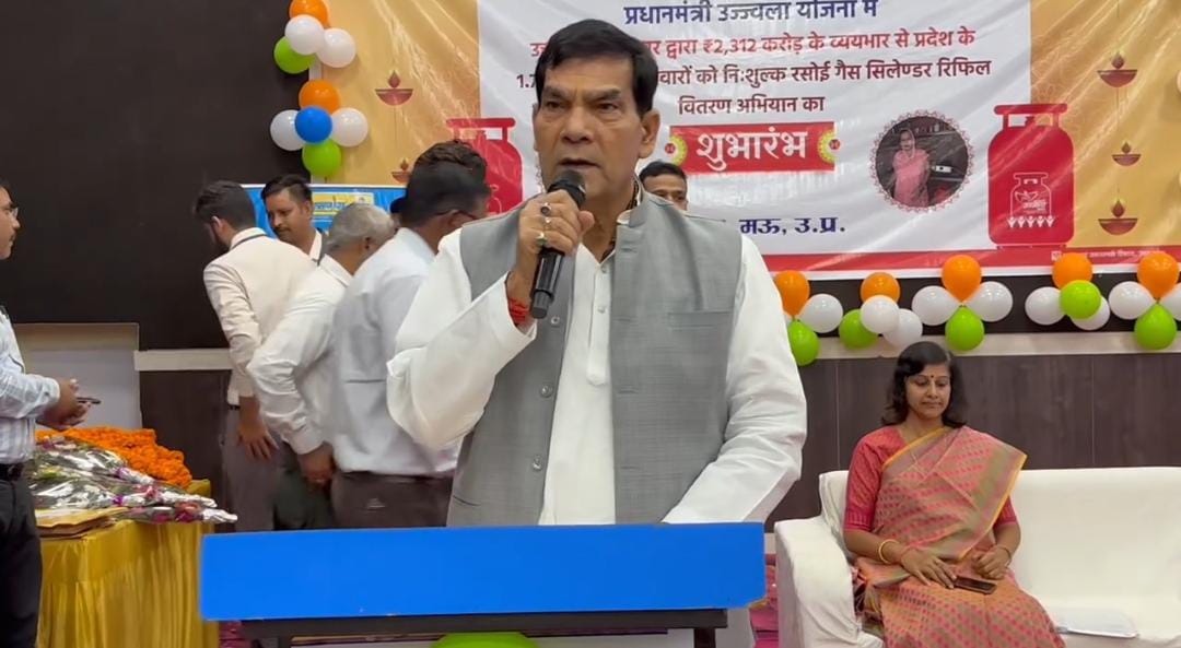 लखनऊ।मुख्यमंत्री योगी आदित्यनाथ द्वारा किये गये प्रधानमंत्री उज्ज्वला योजना के लाभार्थियों को दो निःशुल्क एलपीजी सिलेंडर रिफिल वितरण कार्यक्रम का शुभारंभ लखनऊ में किया गया, जिसका सजीव प्रसारण मऊ जनपद के नगर पालिका परिषद के कम्युनिटी हाल में भी किया गया। इस अवसर पर जनपदीय कार्यक्रम का शुभारंभ नगर विकास एवं ऊर्जा मंत्री ए.के. शर्मा द्वारा किया गया। इसके अलावा नगर विकास मंत्री ने जनपद में 27 करोड़ के विकास कार्यों का शिलान्यास एवं लोकार्पण भी किया। इस अवसर पर मुख्यमंत्री जी एवं नगर विकास मंत्री द्वारा प्रदेश के 1.75 करोड़ लाभार्थी परिवारों को हृदय से बधाई देते हुए प्रदेशवासियों को धनतेरस, दीपावली एवं छठ पर्व की मंगलमय शुभकामनाएं दी। प्रदेश सरकार द्वारा इस योजना के क्रियान्वयन पर 2312 करोड रुपए का व्यय भार आएगा।