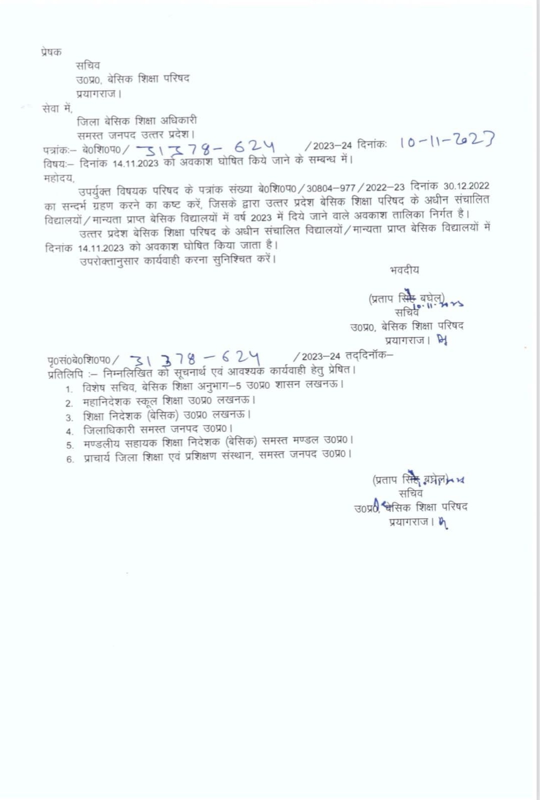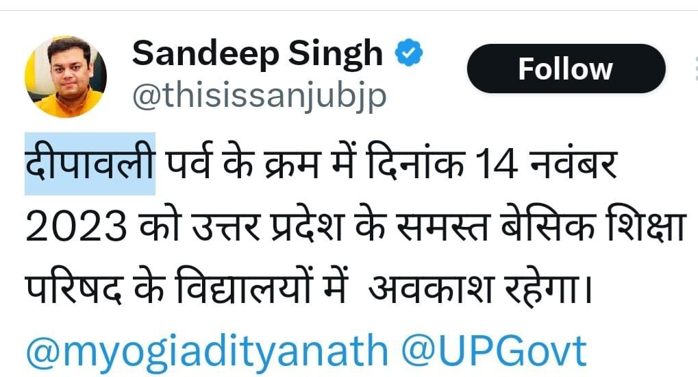शुक्रवार को सचिव ने अलग से आदेश जारी करते हुए 14 को भी छुट्टी कर दी है। इसी महीने 19 नवंबर को छठ पूजा का अवकाश रहेगा और 24 नवंबर को गुरु तेग बहादुर सिंह के शहीदी दिवस का अवकाश है। 27 नवंबर को गुरुनानक जयंती की छुट्टी रहेगी।