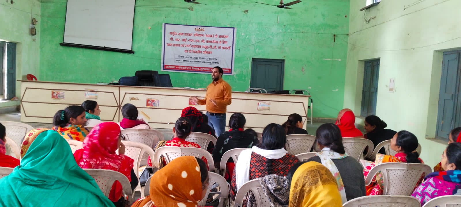 अफजलगढ। उपनिदेशक पंचायत मुरादाबाद मंडल मुरादाबाद के निर्देशन में जनपद बिजनौर के विकासखंड अफजलगढ सभागार में राष्ट्रीय ग्रामीण स्वराज अभियान के अंतर्गत पी0आर0आई0 एस0एच0जी0 कन्वर्जेंस हेतु ग्राम प्रधान एवं वी0ओ0/ स्वयं सहायता समूह सदस्यों का दो दिवसीय प्रशिक्षण का द्वितीय बैच का समापन किया गया। समापन में एडीओ पंचायत पंचायत ललित प्रताप सिंह,सीनियर फैकल्टी सतेन्द्र शर्मा, प्रशिक्षक मौहम्मद वसीम, नीटू सिंह द्वारा किया गया। प्रशिक्षण में सीनियर फैकल्टी सतेन्द्र शर्मा शर्मा ने स्वयं सहायता समूह ग्राम संगठन एवं सीएलएफ का निर्माण कैसे करते है।इनके निर्माण के क्या उद्देश्य है यह कैसे कार्य करते हैं एवं ग्राम के विकास में क्या-क्या भूमिका है पर विस्तार पूर्वक चर्चा की। प्रशिक्षक मौहम्मद वसीम ने वीपीआरपी के गठन के बारे में विस्तार पूर्वक बताया वीपीआरपी का जीपीडीपी में एकीकरण कैसे किया जाए विस्तार पूर्वक बताया। प्रशिक्षक नीटू सिंह ने एसएचजी एवं वीओ के गठन के बारे में जानकारी दी। इस मौके पर एडीओ पंचायत ललित प्रताप सिंह,सीनियर फैकल्टी सतेन्द्र शर्मा, प्रशिक्षक मौहम्मद वसीम, नीटू सिंह आदि मौजूद रहे।