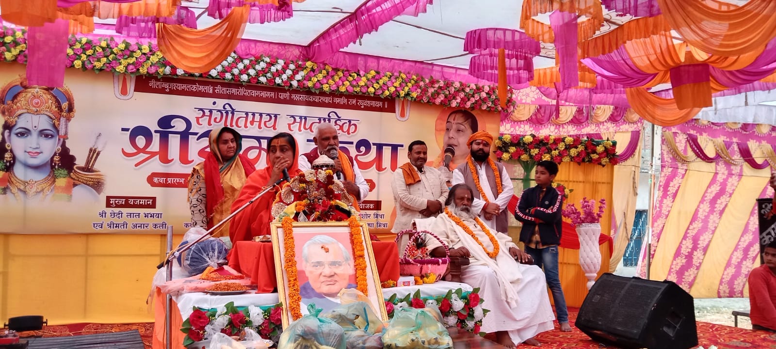 तहसील मुख्यालय मऊ के अनारमण्डपम गेस्ट हाउस में चल रही श्रीराम कथा का समापन बजरंग बली की भक्ति एवं उनके प्रभाव की चर्चा के साथ कथा वाचक महामंडलेश्वर | साध्वी अन्नपूर्णा ने किया। कार्यक्रम मेंपूर्व प्रधानमंत्री भारत रत्न अटल बिहारी के बताए मार्ग पर सभी लोगों को चलना बाजपेयी की जयंती मनाई गई। पूर्व ब्लाक चाहिए। आज पूरा देश उन्हें नमन कर रहा प्रमुख नवल किशोर मिश्रा ने कहा कि है। वह जनसंघ के संस्थापक सदस्य थे पूर्व प्रधानमन्त्री अटल बिहारी बाजपेयी और बाद में राष्ट्रीय अध्यक्ष भी चुने गए।प्रधानमन्त्री बनने के बाद उन्होंने पोखरड मे परमाणु परीक्षण करके भारत को परमाणु शक्ति सम्पन्न देश बनाया था। इसके अलावा देश भर के चारों कोनों को सड़क मार्ग से जोड़ने की स्वर्णिम चतुर्भुज योजना की शुरूआत की थी।