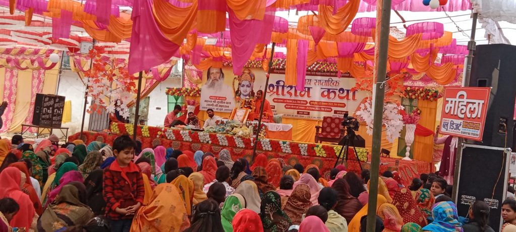 चित्रकूट ।जनपद के मऊ तहसील अंतर्गत जहां भारत रत्न पूर्व प्रधानमन्त्रीअटल बिहारी बाजपेयी की जयंती के अवसर पर संगीतमय साप्ताहिक श्रीराम कथा के समापन के साथ विशाल भण्डारे का किया गया आयोजन। जिसमें हजारों लोगों ने प्रसाद ग्रहण किया।