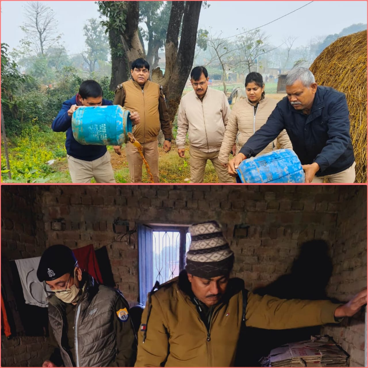 जिला आबकारी अधिकारी वीर अभिमन्यु कुमार के निर्देशन में क्षेत्रीय आबकारी निरीक्षको द्वारा की गई बड़ी कार्यवाही नववर्ष के मद्देनजर देशी शराब, बीयर, एवम, विदेशी मदिरा,और ढाबों पर की गई औचक चेकिंग 35 लीटर कच्ची शराब बरामद हुई व 150 किलोग्राम महुआ लहन नष्ट किया गया लोगों से कच्ची शराब न पीने की अपील की।