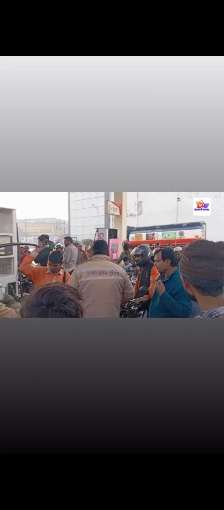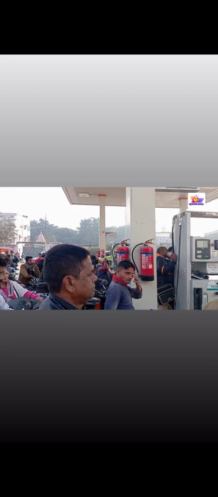 बहराइच के सभी पेट्रोल पंप पर दिखी काफी भीड़ बहराइच के जिंगहा घाट के करीब अवध पेट्रोल पंप पर अधिक भीड़ हो जाने के कारण पुलिस की लेनी पड़ी सहायता पेट्रोल लेने के चक्कर में भीड़ हुई थी बेकाबू भीड़ से परेशान हो कर पेट्रोल पंप के स्टाफ ने किया पुलिस को फोन पुलिस ने भीड़ पर काबू पा लिया