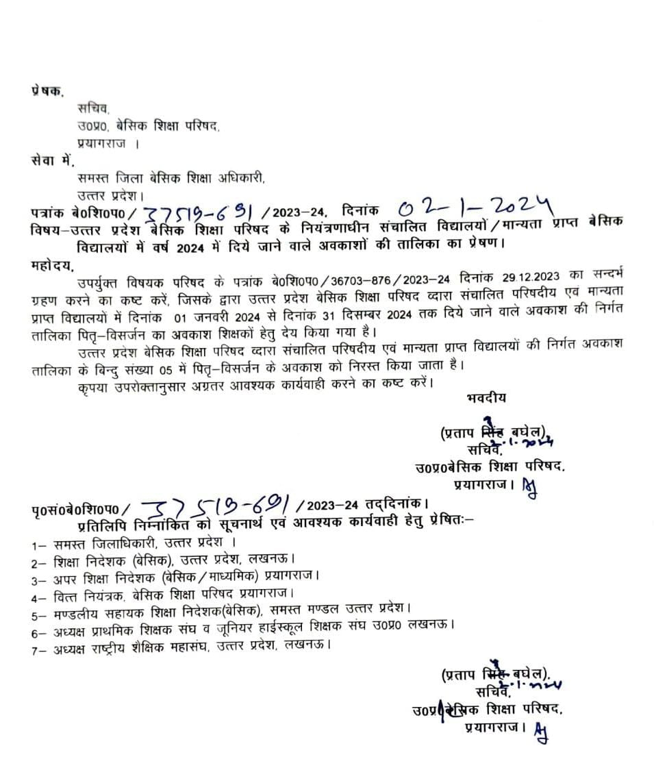 Share this: Click to share on Facebook (Opens in new window) Facebook Click to share on X (Opens in new window) X Click to share on LinkedIn (Opens in new window) LinkedIn Click to share on X (Opens in new window) X Click to share on WhatsApp (Opens in new window) WhatsApp Click to print (Opens in new window) Print Post navigation सिद्धार्थनगर:अत्यधिक शीतलहर व ठंड के चलते कक्षा 1 से 12 तक के सभी बोर्ड के विद्यालय 9 जनवरी तक रहेंगे बंद . यूपी:प्रदेश के सभी जिलों के समस्त बोर्डों के माध्यमिक विद्यालयों के समय परिवर्तन सम्बन्धी आदेश जारी।देखें..