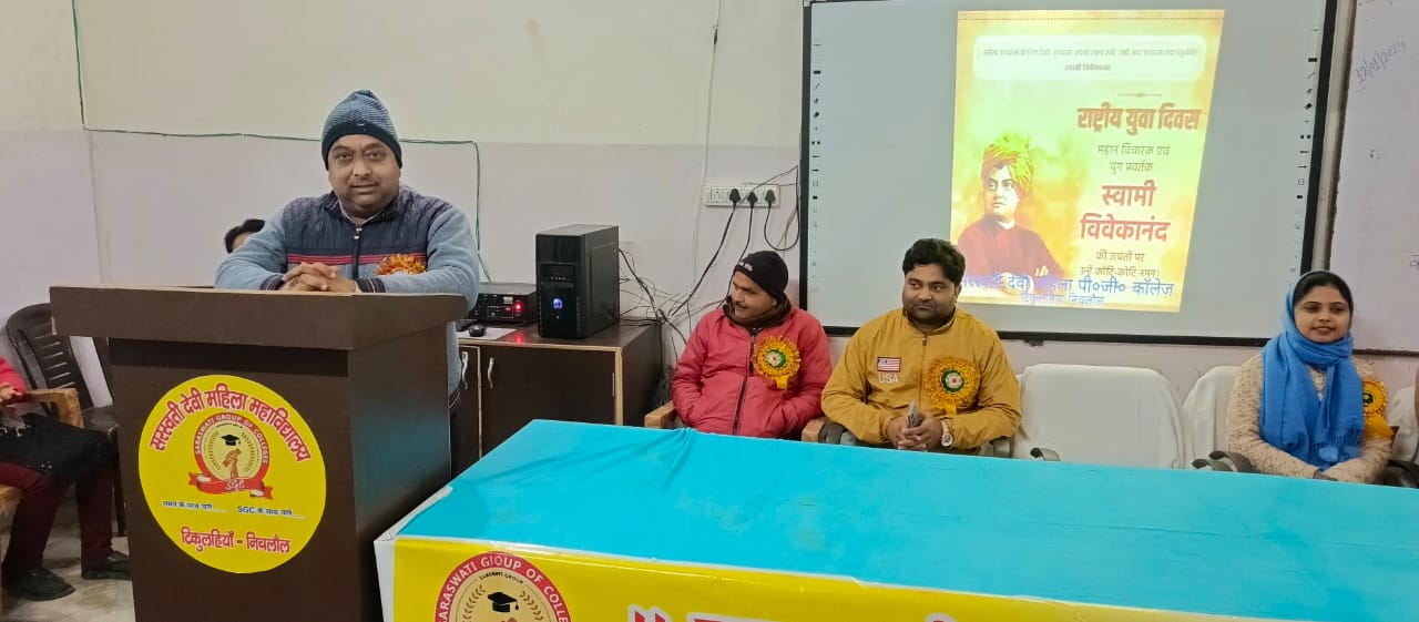 महराजगंज। सरस्वती देवी महिला पी.जी.कालेज,टिकुलहिया,निचलौल में स्वामी विवेकानंद जयंती को राष्ट्रीय युवा दिवस के रुप मे मनाया गया। इस अवसर महाविद्यालय परिवार द्वारा उन्हें श्रद्धा सुमन अर्पित कर याद किया गया।