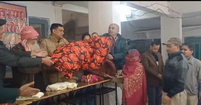 स्योहारा – स्योहारा एम क्यू गर्ल्स इंटर कॉलेज में शुक्रवार को हेल्पलाइन सोसाइटी द्वारा 22 वा लिहाफ वितरण कार्यक्रम का आयोजन किया गया मुख्यतिथि के रूप मे थाना अध्यक्ष धर्मेंद्र सिंह, पूर्व पालिका अध्यक्ष हाजी अख्तर जलील, शहर इमाम मौलाना कामिल कासमी ने हेल्पलाइन सोसाइटी के पदाधिकारी के साथ मिलकर जरूरत मंदो को लिहाफ वितरण किये।