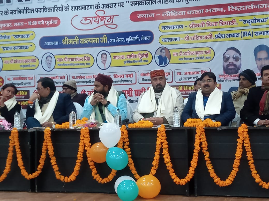 लोहिया कला भवन में प्रेस क्लब सिद्धार्थ नगर क़े नवनिर्वाचित पदाधिकारीयों क़े शपथ समारोह कार्यक्रम में भारतीय मजदूर संघ / राज्य कर्मचारी संयुक्त परिषद के जिला अध्यक्ष अनिल सिंह सम्मिलित होकर संबोधित किये साथ में राज्य कर्मचारी संयुक्त परिषद के जिला मंत्री शैलेंद्र गुप्ता वरिष्ठ उपाध्यक्ष राजेश श्रीवास्तव ग्राम पंचायत अधिकारी संघ के अध्यक्ष आशुतोष यादव चतुर्थ श्रेणी कर्मचारी संघ के अध्यक्ष नंदकिशोर ग्राम सफाई कर्मचारी संघ के अध्यक्ष जग नारायण मंत्री अश्विनी पाठक सुशील अंबेडकर समेत राजकीय शिक्षक संघ तथा परिषद और मजदूर संघ पदाधिकारी सम्मिलित हुए