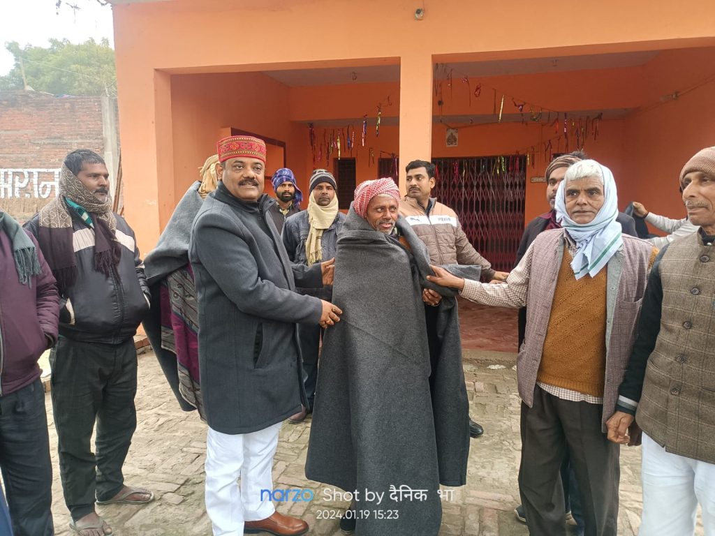 *निन्दूरा बाराबंकी कड़ाके की ठंड को देखते हुए ब्लॉक प्रमुख रामू गुप्ता ने क्षेत्र के कोडरी गोपालपुर, इटौंजा,परवरभारी,बंदगीनगर,पैगंबरपुर,नहन्नीपुर,दरावाँ,इब्राहिमपुर,खरिहानी आदि ग्राम पंचायतों में जरूरतमंद असहाय गरीब लोगों को कंबल वितरण किया लगभग 70 से 80 कंबल गरीबों को वितरण किया कंबल पाकर जरूरतमंद लोगों के चेहरे खिल गए और ब्लॉक प्रमुख का बहुत-बहुत धन्यवाद दिया क्षेत्र में सैकड़ो ऐसे जरूरतमंद हैं जिनकी आर्थिक स्थिति बिल्कुल दयनीय है।ऐसे में इस कड़कती ठंड में ठिठूरने के लिए वे मजबूर रहते हैं।इसी समस्या को देखते हुए ब्लॉक प्रमुख रामू गुप्ता। नें दर्जनों असहाय मजबूर,जरूरतमंद एवं बुजुर्गों को कंबल मुहैया कराया है। कंबल मुहैया होने से जरूरतमंदों को बेहद सुविधा हुई इस दौरान प्रमुख ने कहा कि किसी भी प्रकार की असुविधा एवं समस्या होने पर बेझिझक मुझे सूचित करें।मैं चौबीस घंटे क्षेत्र की जनता की सेवा के लिए तत्पर रहूंगा।कंबल वितरण के मौके पर भारतीय जनता पार्टी के वरिष्ठ कार्यकर्ता शिव शंकर सिंह सचिन मौर्य अंकुर गुप्ता वीरेंद्र आदित्य वर्मा राजेंद्र समेत अन्य लोग भी उपस्थित थे।