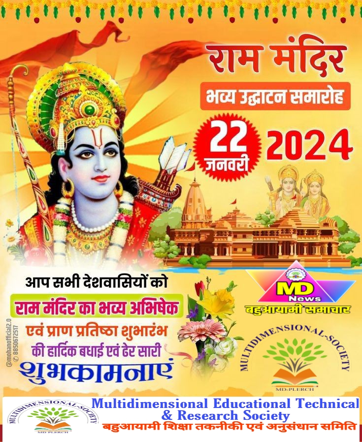 उत्तर प्रदेश।अयोध्या में भव्य राम मंदिर में आज दिनाँक 22 जनवरी 2024 को भगवान श्री राम की प्राण प्रतिष्ठा होने पर बहुआयामी शिक्षा तकनीकी एवम अनुसंधान संस्थान के संस्थापक के.एम.अमीश ने सभी देशवासियों को इस ऐतिहासिक पल पर बधाई व शुभकामनाएं दी। वहीं बहुआयामी राजनीतिक पार्टी के सदस्यों ने जय श्री राम के जयकारे के साथ सभी देशवासियों को बधाई दिया।साथ ही बहुआयामी समाचार के राष्ट्रीय प्रभारी धर्मेन्द्र कसौधन ने इस गौरवमयी पल पर सभी देशवासियों को शुभकामनाएं व बधाई दी।
