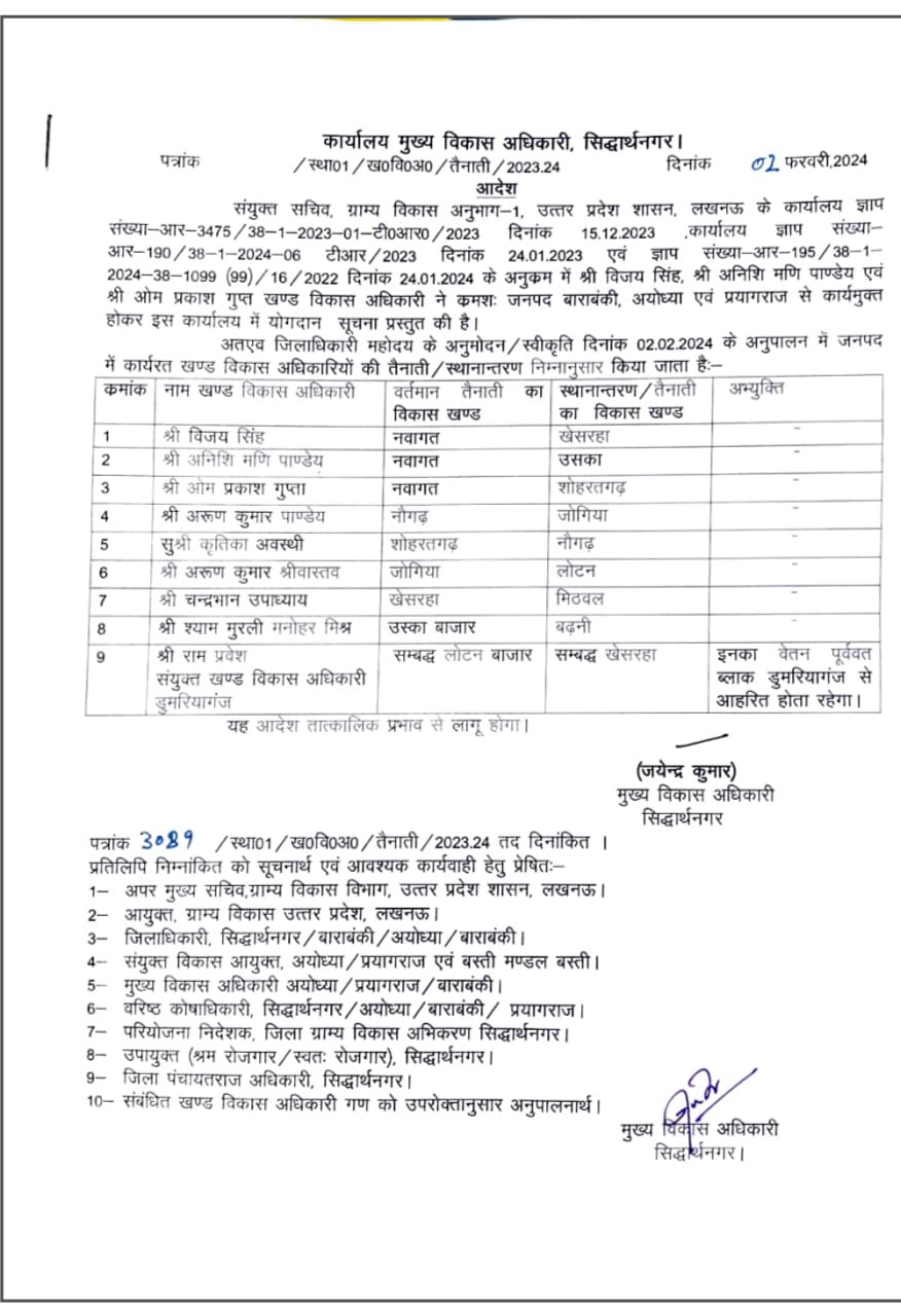 🔵राम प्रवेश को सम्बद्ध लोटन बाजार से सम्बद्ध खेसरहा संयुक्त खण्ड विकास अधिकारी बनाए गए।।