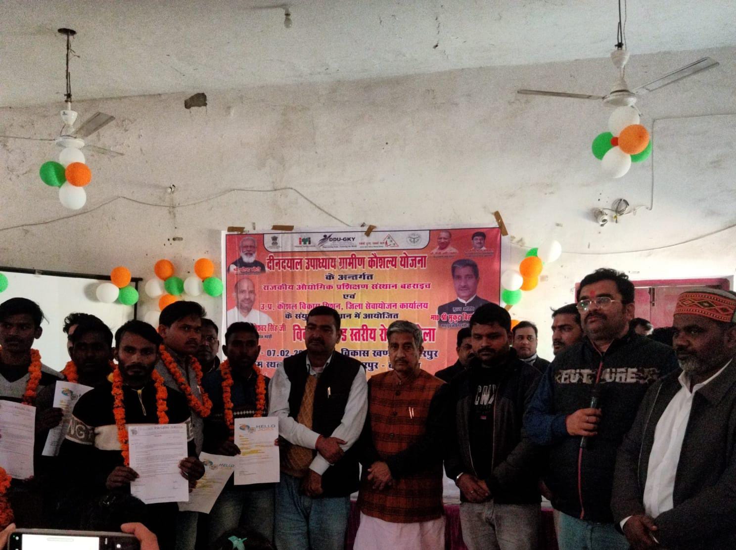 उ0प्र0 कौशल विकास मिशन, राजकीय आई०टी०आई० एवं जिला सेवायोजन जनपद बहराइच के संयुक्त तत्वावधान में आज दिनांक 07.02.2024 को विकास खण्ड फखरपुर में रोजगार मेला का आयोजन किया गया। जिसमें पूर्व मंत्री माननीय मुकुट बिहारी वर्मा द्वारा रोजगार मेला में चयनित हुए युवक युवतियों को नियुक्ति पत्र प्रदान किया गया। विकास खण्ड फखरपुर में आयोजित रोजगार मेला में कुल 11 कम्पनियों ने प्रतिभाग किया, जिसमें 255 अभ्यर्थियों द्वारा साक्षात्कार दिया गया। जिसमें से 167 बेरोजगार युवक युवतियों ने रोजगार प्राप्त किया। इस कार्यक्रम में श्री प्रदीप पांडेय मंडल अध्यक्ष भाजपा फखरपुर, श्री सतीश शुक्ला, मेला प्रभारी राहुल बाजपेयी, कार्यदेशक धर्मेन्द्र कुमार, धर्मेन्द्र गोड, अर्पित मौर्य, भानु प्रताप, निरंजन लाल, नदीम अहमद, अबू बक्र और जियाउल हसल रिजवी आदि कर्मचारी उपस्थित रहे।