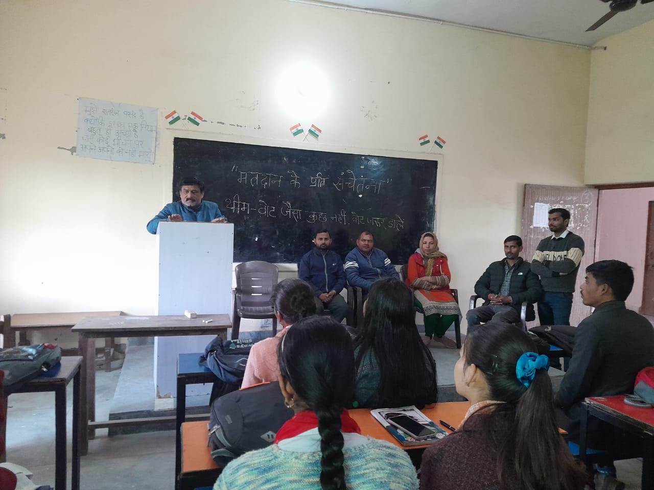प्राचार्य डॉ. अजय कुमार सिन्धु ने कार्यक्रम का समापन करते हुए विद्यार्थियों को लोकतंत्र मजबूत बनाने की शपथ दिलवाई व राष्ट्रीय मतदाता दिवस का महत्व बताया। उन्होंने कहा कि प्रत्येक वर्ष 25 जनवरी को भारत में राष्ट्रीय मतदाता दिवस मनाया जाता है । उपरोक्त विषय पर छात्र/छात्राओं ने भी अपने विचार प्रकट किये | कार्यक्रम में श्री ज्ञानेंद्र कश्यप, दिव्यांश सक्सेना, वैभव तोमर, नितिन माहेश्वरी, विनोद यादव, सत्यपाल यादव, डॉ. नीलोफ़र खान, तृप्ति सक्सेना, सुचित गुप्ता, सोनाली, तीरेश, डॉ. महीपाल सिंह आदि प्रवक्ता उपस्थित रहे |