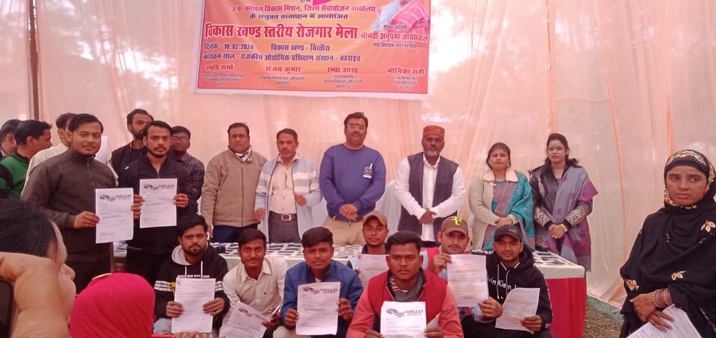 उ0प्र0 कौशल विकास मिशन, राजकीय आई०टी०आई० एवं जिला सेवायोजन जनपद बहराइच के संयुक्त तत्वावधान में आज दिनांक 10.02.2024 को विकास खण्ड चित्तौरा के राजकीय आईटीआई निकट चौपाल सागर में रोजगार मेला का आयोजन किया गया। जिसमें प्रधानाचार्य राजकीय आईटीआई श्री सुनील कुमार मिश्रा द्वारा रोजगार मेला में चयनित हुए युवक/युवतियों को नियुक्ति पत्र प्रदान किया। राजकीय आईटीआई में आयोजित रोजगार मेला में कुल 13 कम्पनियों ने प्रतिभाग किया, जिसमें 345 अभ्यर्थियों द्वारा साक्षात्कार दिया गया। जिसमें से 209 बेरोजगार युवक युवतियों को रोजगार प्रदान किया। मंच संचालन का कार्य श्री अभय शर्मा द्वारा किया किया। इस कार्यक्रम में मेला प्रभारी राहुल बाजपेयी, प्रभारी कार्यदेशक धर्मेंद्र कुमार, धर्मेंद्र गोंड, डी के त्रिपाठी, मसूद अहमद, मोहम्मद अजमल, रवि शंकर पाठक, भानु प्रताप, उपेंद्र कुनार, निरंजन लाल, अब्दुल माजिद, नदीम अहमद, अबू बक्र, अमित पांडे, शैलेंद्र कुमार आदि कर्मचारी उपस्थित रहे।
