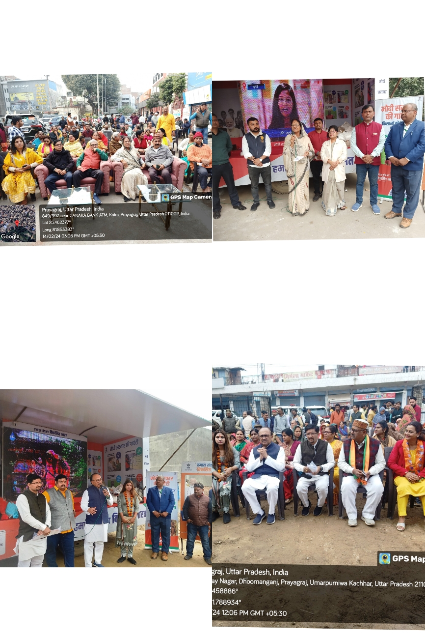 विकसित भारत संकल्प यात्रा के नोडल अधिकारी, भारत सरकार राम मूरत ने बताया कि 15 फरवरी को प्रथम सत्र में एफ.सी.आई. नैनी तथा द्वितीय सत्र में खटिकाना बस्ती मुट्ठीगंज में वैन पहुंचेगी। कार्यक्रम के दौरान पार्षद रीना, पार्षद सोनिका अग्रवाल, चन्द्रशेखर ओझा, जोनल अधिकारी अखिलेश त्रिपाठी, अवनीश तिवारी, वैभव जायसवाल, धीरेन्द्र ओझा, सचिन जायसवाल, अमन केसरवानी, अभिषेक सिंह, अशोक कौशल, अनीता सिंह, सरोज गुप्ता, विजयलक्ष्मी , मुकेश कुमार, गोपाल बाबू जायसवाल, विक्रमजीत भदौरिया, आंचल ओझा, चन्दन शुक्ला, सरोज गुप्ता, नीरज पाण्डेय, विवेक गौड, संजय तिवारी कविता तोमर, विशाखा मिश्रा, वंदना, राजेश केसरवानी, सुचेत गुप्ता सहित बड़ी संख्या में प्रमुख लोग उपस्थित रहे l