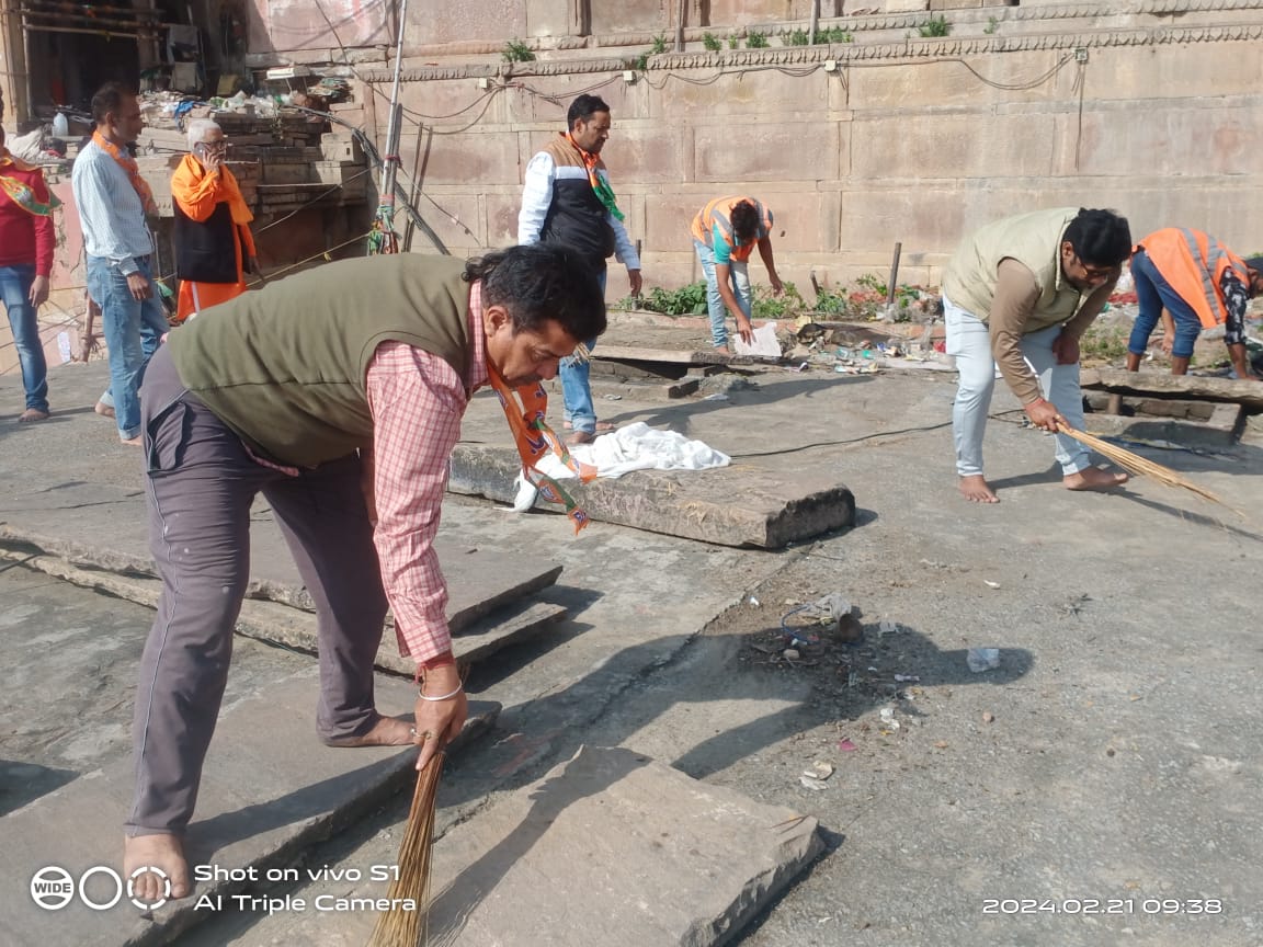 भाजपा महानगर स्वच्छता प्रमुख व भाजपा के पार्षद दल के उप नेता व पार्षद नरसिंह दास बाबा ने स्वच्छ भारत का संदेश देते हुए कहा कि प्रधानमंत्री नरेंद्र मोदी जी ने स्वच्छ काशी सुंदर काशी स्वस्थ काशी द्वारा चलाए गए अभियान को जन आंदोलन का रूप ले चुका है। कहां की नरेंद्र मोदी जी ने प्रधानमंत्री बनने के पश्चात अपने संसदीय क्षेत्र से स्वच्छता कर पूरे देश भर में स्वच्छता अभियान चलाया गया। अयोध्या में श्री राम लला की प्राण प्रतिष्ठा के पश्चात प्रथम बार प्रधानमंत्री नरेंद्र मोदी जी अपने संसदीय क्षेत्र वाराणसी में आगमन हो रहा है इससे पूर्व वाराणसी की संसदीय क्षेत्र में चार दिवसीय 19 फरवरी से 22 फरवरी तक 100 वार्डों में स्वच्छता अभियान चलाया जा रहा है इसी क्रम में आज अभियान के तीसरे दिन दशाश्वमेध स्थित सिद्ध पीठ माता शीतला मंदिर के प्रांगण में उसकी छत पर वह आसपास का क्षेत्र में भाजपा पार्टी के कार्यकर्ताओं के समूह व नगर निगम के सफाई कर्मियों के सहयोग से साफ सफाई की गई वह गंगाजल से धोया गया।