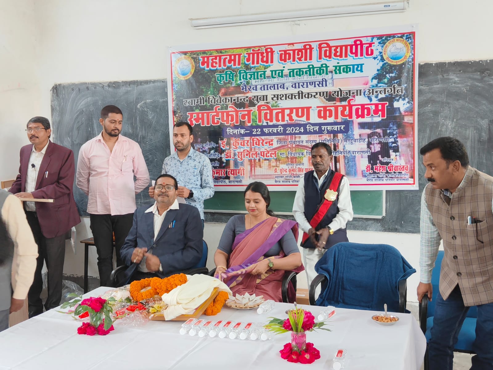 वाराणसी। महात्मा गांधी काशी विद्यापीठ के कृषि विज्ञान एवं तकनीकी संकाय भैरव तालाब परिसर में गुरुवार को उ.प्र. सरकार की महत्वाकांक्षी योजना स्वामी विवेकानंद युवा सशक्तिकरण योजना अंतर्गत स्मार्टफोन वितरण कार्यक्रम हुआ। विशिष्ट अतिथि डॉ. सुनील पटेल, विधायक, रोहनिया ने छात्रों को कृषि के क्षेत्र में मोबाइल की अहम उपयोगिता व महत्व के बारे में बताया। मुख्य अतिथि पूनम मौर्या, जिला पंचायत अध्यक्ष, वाराणसी ने छात्रों को सरकार की हितकारी व कल्याणकारी योजनाओं के बारे में बताया।