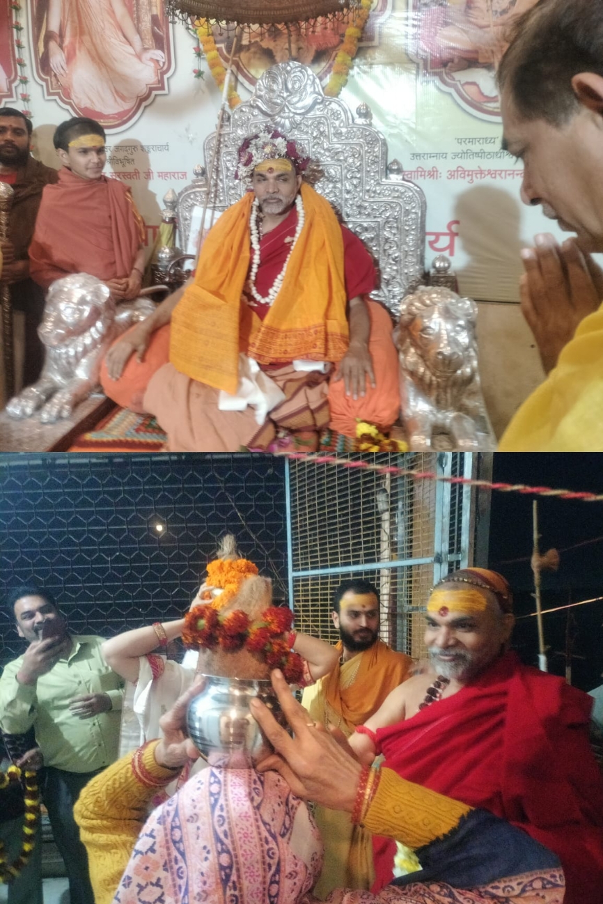 परमाराध्य परमधर्माधीश ज्योतिष्पीठाधीश्वर जगद्गुरु शङ्कराचार्य स्वामिश्री: अविमुक्तेश्वरानन्द: सरस्वती “1008” आज सायं अहमदाबाद से हवाई मार्ग से बाबतपुर पहुँचे।बबतरपुर से सड़क मार्ग से राजघाट पहुँचे और फिर वहाॅ से जलमार्ग से शङ्कराचार्य घाट स्थित श्रीविद्यामठ पधारे। उपस्थित सन्तों,भक्तों व वैदिक विद्यार्थियों ने जयोद्घोष व पुष्पवर्षा कर पूज्यपाद शङ्कराचार्य जी महाराज का स्वागत,अभिनन्दन व वन्दन किया।