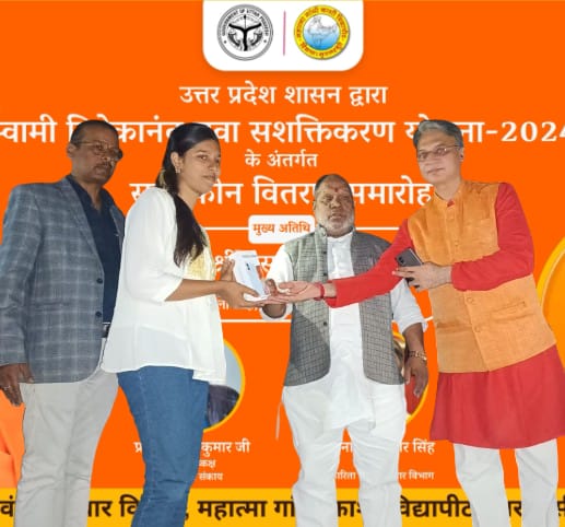 वाराणसी। उत्तर प्रदेश शासन द्वारा स्वामी विवेकानंद युवा सशक्तिकरण योजना-2024 के अंतर्गत पत्रकारिता एवं जनसंचार विभाग, महात्मा गांधी काशी विद्यापीठ की ओर से मगंलवार को स्मार्टफोन वितरण समारोह का आयोजन किया गया। गांधी अध्ययन पीठ सभागार में आयोजित समारोह के मुख्य अतिथि हंसराज विश्वकर्मा, सदस्य, विधान परिषद एवं जिला अध्यक्ष, भारतीय जनता पार्टी वाराणसी ने पत्रकारिता एवं जनसंचार विभाग के विद्यार्थियों को स्मार्टफोन वितरित किया। इस मौके पर उन्होंने छात्रों को शुभकामना देते हुए कहा कि मोबाइल का सही इस्तेमाल करके अपने माता-पिता, गुरुजन एवं विश्वविद्यालय का नाम रोशन करें। उन्होंने कहा मोदी-योगी के डिजिटल इंडिया के सपने स्मार्टफोन के माध्यम से साकार होंगे।