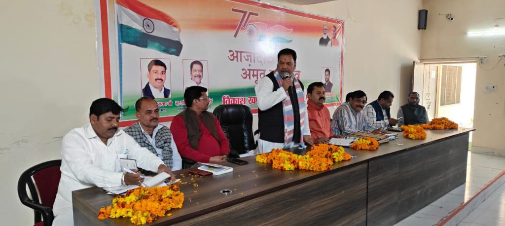 विधायक राजीव कुमार सिंह ने आगे विश्वास दिलाते हुए कहा कि हम अपने देवतुल्य कार्यकर्ताओं व सहयोगियों के बलबूते फिर अथक प्रयासों से पूर्व की तरह इस बार भी लोकसभा चुनाव में भाजपा ऐतिहासिक मतों से जीत हासिल करेगी क्योंकि आप लोगों को विपक्ष के मंसूबों को फिर फेल कर मोदी जी के नेतृत्व में ऐतिहासिक विजय का लक्ष्य हासिल करना है क्योंकि भावी पीढ़ियों के उज्ज्वल भविष्य और भारत को विकसित भारत बनाने का सपना मोदी जी के नेतृत्व में सम्भव है। मुख्य अतिथि लोकसभा प्रभारी अशोक भारतीय ने कहा कि चुनाव सिर पर तैयार है और हम सभी कार्यकर्ताओं को अपनी पूरी ऊर्जा के साथ बूथ को जीताना है क्योंकि बूथ जीता तो चुनाव जीता इस लक्ष्य को ही लेकर प्रत्येक कार्यकर्ता को कार्य करना है तभी अबकी बार 400 पार लक्ष्य प्राप्त होगा।