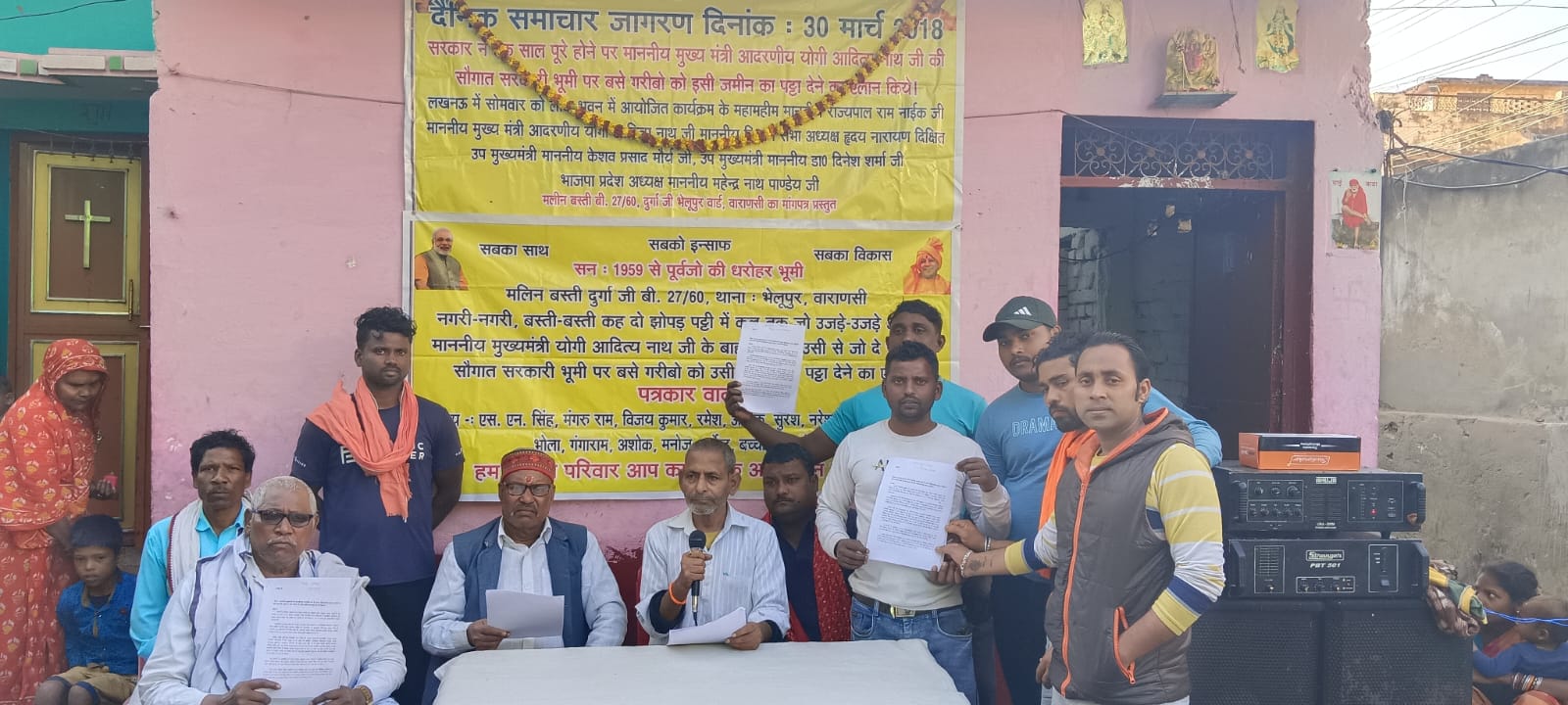वाराणसी बताते चले की मलिन बस्ती दुर्गा जी वाराणसी नगर निगम की जमीन पर मेरे पूर्वज कई वर्षों से काबिज है हम लोग नगर निगम स्वास्थ्य विभाग में मल मूत्र सफाई का कार्य करते हैं हम लोगों को पूर्व प्रशासक बृजमोहन वोहरा एवं देवी दयाल जी का बराबर साथ मिला है हमारे पूर्वजों के आशीर्वाद से शासन जिला प्रशासन भारत सरकार ने जीवन पार्जन हेतु नगर निगम स्वास्थ्य विभाग में काम करने का अवसर प्राप्त हुआ संरक्षक एस एन सिंह ने बताया कि सरकारी भूमि पर बसे गरीबों को इसी जमीन का पट्टा देने का जो मुख्यमंत्री एवं प्रधानमंत्री ने ऐलान किया उससे हम लोग काफी खुश हैं जिस तरीके से सरकार ने ऐलान किया है उस तरीके से ही हम लोगों के नाम पट्टा कर दिया जाए! इसके लिए हम समस्त परिवार शासन प्रशासन को धन्यवाद देते हैं।