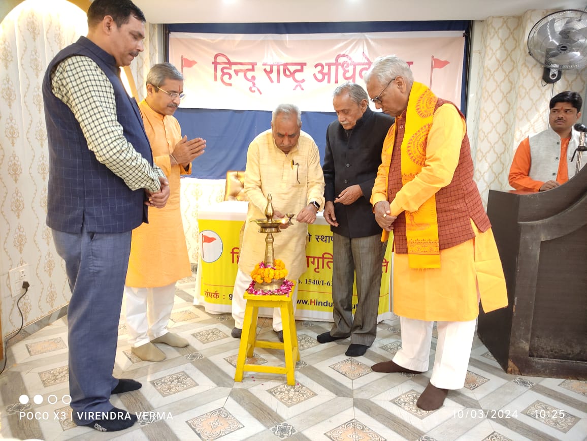 गोरखपुर – भारत को हिन्दू राष्ट्र कैसे घोषित किया जाए इस पर विचार मंथन एवं कार्ययोजना बनाने के उद्देश्य से हिन्दू राष्ट्र अधिवेशन का आयोजन गोरखपुर में तारा मण्डल स्थित रजवाड़ा सभागृह मे किया गया | अधिवेशन का शुभारंभ शंखनाद, दीपप्रज्वलन एवं वेदमंत्रपठन से हुआ । हिन्दू जनजागृति समिति के धर्मप्रचारक सद्गुरु निलेश सिंगबालजी ने कहा कि श्रीराम मंदिर मे मूर्ति की प्राणप्रतिष्ठा यह सूक्ष्म स्तर पर हिन्दू राष्ट्र स्थापना का आरंभ है | छद्म धर्मनिरपेक्षता के नामपर गत 70 वर्ष हिंदुओं का हो रहा दमन अब हिन्दू पहचान रहा है तथा हिन्दू राष्ट्र की मांग बढ़ रही है | संवैधानिक व्यवस्था में लोकेच्छा को अर्थात बहुमत को प्रधानता होती है तथा उसके अनुसार लोगों के लिए अभिप्रेत राजतंत्र बनाने का प्रावधान होता है । भारतीय संविधान के अनुच्छेद 368 बी’ में ऐसा प्रावधान है; इसलिए केंद्र सरकार संवैधानिक प्रक्रिया के माध्यम से भारत को हिन्दू राष्ट्र घोषित करने की दृढ इच्छाशक्ति दिखाएं ।