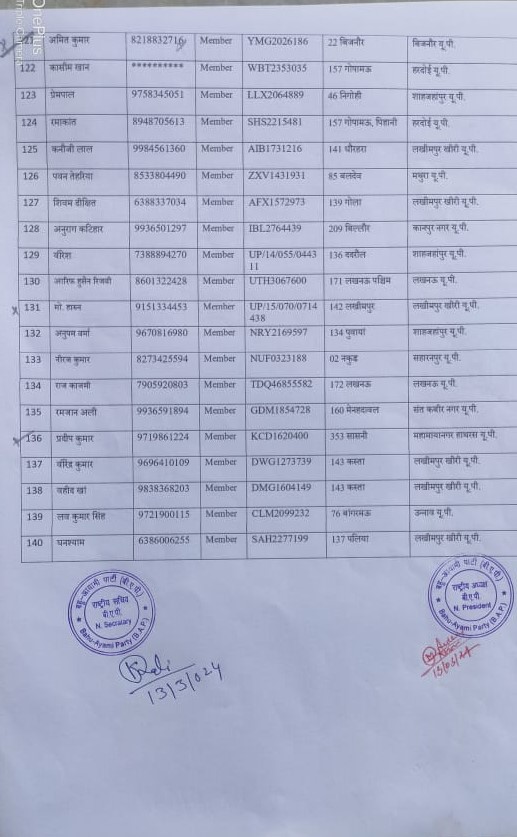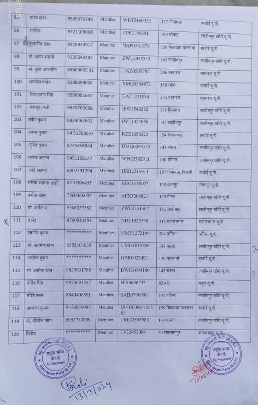 कमलेश कुमार गौतम जी गाजियाबाद से प्रभारी, ऋषभ कटियार जी कानपुर देहात से उपप्रभारी, आसिफ रईस जी बिजनौर से नियंत्रक, राम रहीम जी फर्रुखाबाद से उपनियंत्रक, गौरव कुमार जी मुरादाबाद से सलाहकार, सिमरनजीत सिंह जी मुरादाबाद से उपसलाहकार, के. एम. आमिश जी लखीमपुर खीरी से अध्यक्ष, अमित कुमार जी गोरखपुर से उपाध्यक्ष, इश्तियाक अली जी लखीमपुर खीरी से महासचिव, मोहम्मद मोबीन गाज़ी जी लखीमपुर खीरी से सचिव, अनुज पांडे जी लखीमपुर खीरी से, महाप्रवक्ता, संजय धीमान जी लखीमपुर खीरी से प्रवक्ता, संजय गोस्वामी जी जालौन से गोपनीयक, मोहम्मद इमरान जी बहराइच से उपगोपनीयक, रहनुमा खान जी हरदोई से कोषाध्यक्ष, सैयद अजीम अहमद जी लखीमपुर खीरी से उपकोषाध्यक्ष