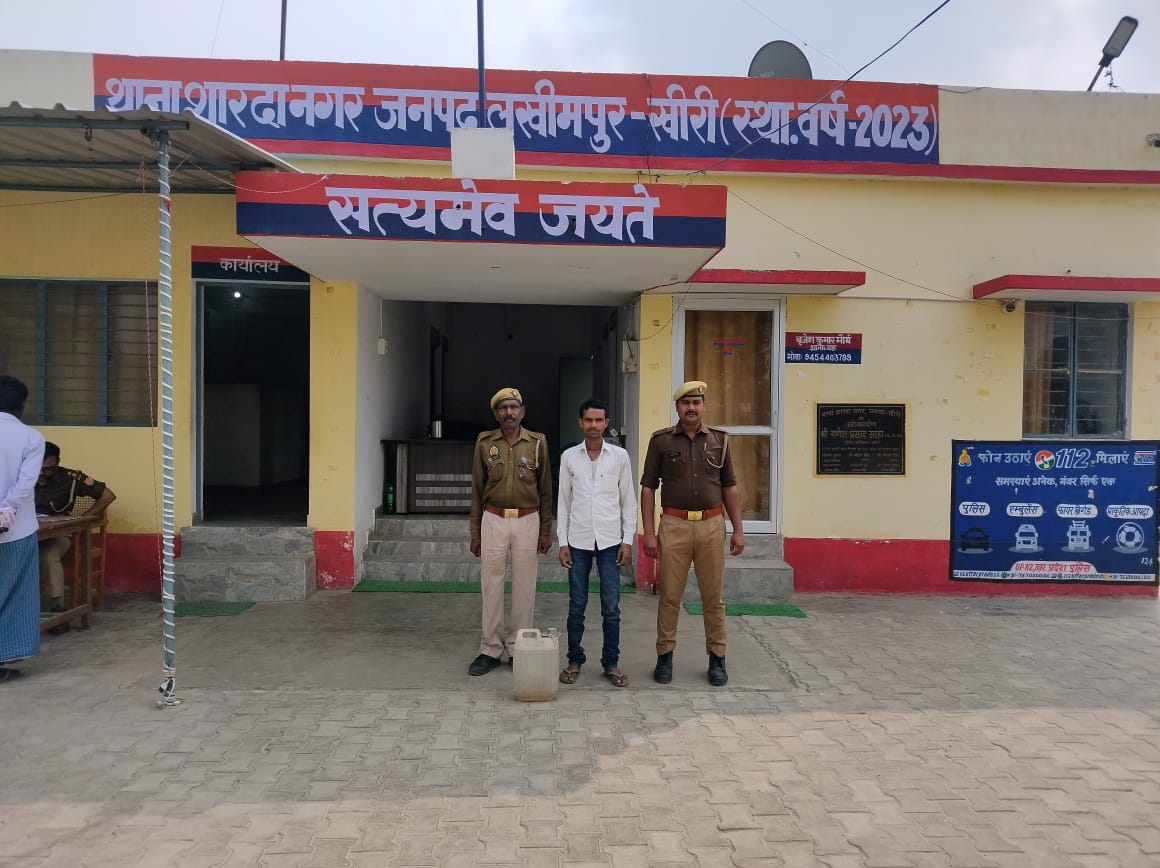 शारदा नगर खीरी । पुलिस अधीक्षक खीरी गणेश प्रसाद साहा के निर्देशन में सम्पूर्ण जनपद में अवैध कच्ची शराब के रोकथाम व अपराधियों की गिरफ्तारी हेतु चलाए जा रहे अभियान के अन्तर्गत, अपर पुलिस अधीक्षक (पूर्वी), क्षेत्राधिकारी सदर के कुशल मार्ग दर्शन में थानाध्यक्ष शारदानगर बृजेश कुमार मौर्य के नेतृत्व में थाना शारदानगर पुलिस टीम द्वारा दिनांक 21.03.2024 को 01 नफर अभियुक्त को गिरफ्तार कर उसके कब्जे से 20 लीटर अवैध कच्ची शराब बरामद किया गया जिसके सम्बन्ध में थाना शारदानगर पर विधिक कार्यवाही की जा रही है।भागौती प्रसाद पुत्र स्व0 चन्द्रिका निवासी दुबैला थाना शारदानगर जनपद खीरी के पास से अवैध कच्ची शराब 20 लीटर बरामद कर मु0अ0स0 64/2024 धारा 60 Ex Act. विरुद्ध भागौती प्रसाद पुत्र स्व0 चन्द्रिका को उप निरीक्षक अम्बेश्वर दत्त त्रिपाठी थाना शारदानगर खीरी-