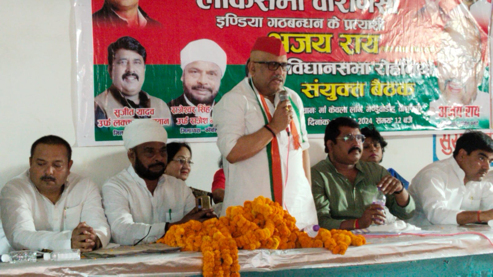 वाराणसी आज दिनांक 07 अप्रैल को समाजवादी पार्टी द्वारा रोहनिया विधानसभा क्षेत्र में इंडिया गठबंधन के प्रत्याशी मा0 श्री अजय राय जी के समर्थन में संयुक्त कार्यकर्ता बैठक हुआ।बैठक का संयोजन समाजवादी पार्टी की जिला इकाई द्वारा हुआ इस बैठक में मुख्य रूप से इंडिया गठबंधन के प्रत्याशी व प्रदेश अध्यक्ष उ0प्र0 कांग्रेस कमेटी श्री अजय राय जी उपस्थिति रहे।