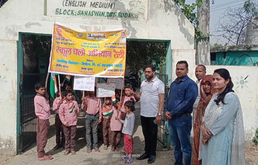 मुजरिया क्षेत्र के प्राथमिक विद्यालय बिचौला के बच्चों व अध्यापकों ने स्कूल चलो अभियान के तहत रैली निकालकर लोगों को जागरूक कर अपना संदेश दिया। स्कूल चलो अभियान के अंतर्गत आयोजित रैली को ब्लॉक के एआरपी राजन यादव व ग्राम प्रधान विमला देवी ने हरी झंडी दिखाकर रवाना किया । इस मौके पर राजन यादव ने 6 से 14 वर्ष के प्रत्येक बच्चे का नामांकन कराने पर जोर देते हुए अभिभावकों व जनप्रतिनिधियों से अपील की । रैली को गांव विचोला के प्राथमिक विद्यालय से शुरू हुई और पूरे गांव में जनप्रतिनिधियों को जागरूक करते हुए विद्यालय पर समापन हुआ । इस मौके पर राजन यादव,ग्राम प्रधान विमला देवी,विपिन कुमार,जितेंद्र कुमार, सविता ठेनुआ व ओमकार सिंह सहित ग्रामवासी भी उपस्थित रहे ।