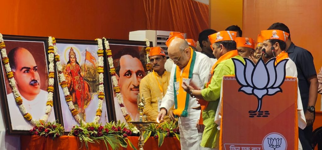 कार्यक्रम के प्रारंभ में गृहमंत्री अमित शाह ने दीप प्रज्ज्वलित कर पं दीनदयाल उपाध्याय एवं डॉ श्यामा प्रसाद मुखर्जी के चित्र पर पुष्प अर्पित किए।