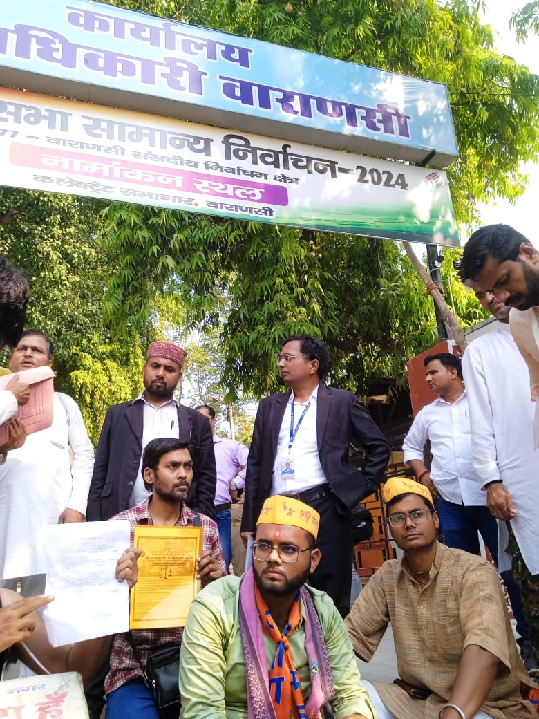 वाराणसी लोक सभा क्षेत्र में आज गो गठबंधन समर्थित युग तुलसी पार्टी के प्रत्याशी कोली शेट्टी शिव कुमार का दूसरा सेट का नामांकन नहीं लिया गया जबकि सुबह 11 बजे से उनको लाइन में खड़ा कराएं रखा गया और अंत में यह कह कर मना कर दिया गया कि अब समय खत्म हो गया है जबकि कांग्रेस सहित बसपा प्रत्याशी का नामांकन जमा किया गया। इससे आक्रोशित होकर गौ गठबंधन के राष्ट्रीय संयोजक राजा सक्षम सिंह योगी बाहर धरने पर बैठ गए बाद पुलिस राजा सक्षम योगी को कैंट थाने उठा ले गई गो गठबंधन के राष्ट्रीय प्रभारी राजा सक्षम योगी ने कहा कि यह लोक तंत्र की हत्या है।