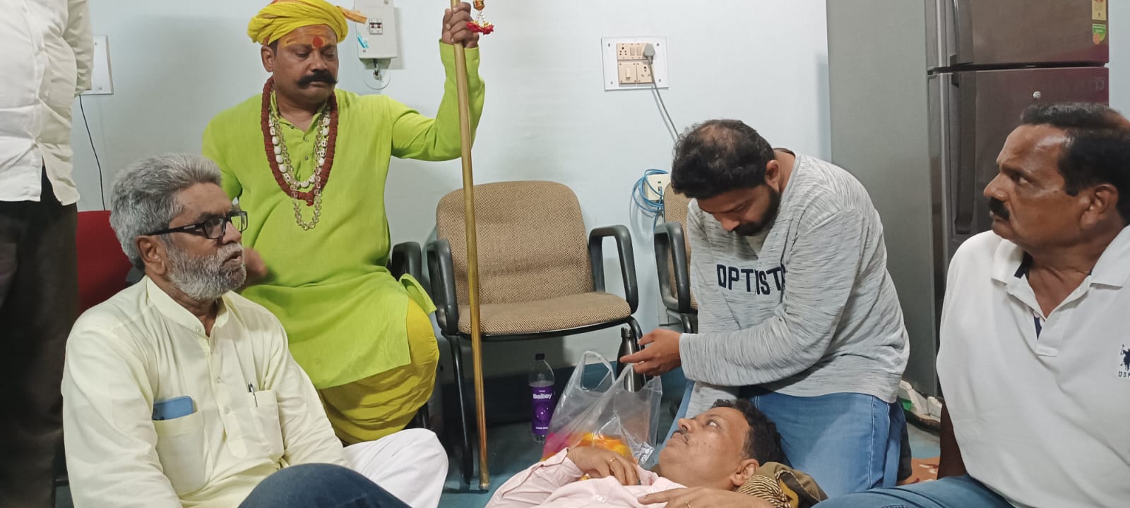 अनशनरत डॉ हरिओम शंकर को समर्थन व आशीष देने पहुचे त्रिशूलधारी राकेश विश्वनाथं।