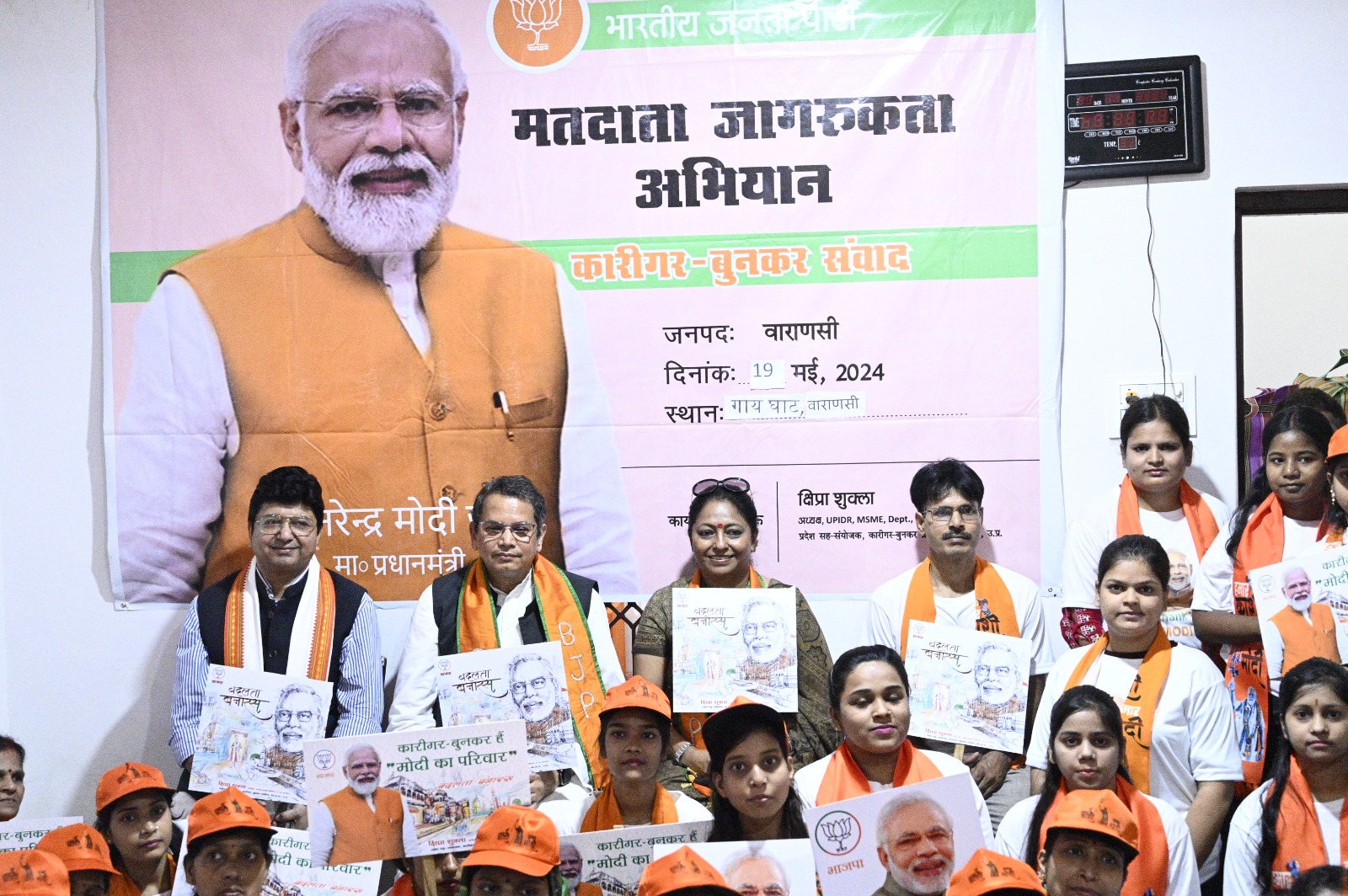 वाराणसी 19 मई–: मतदाता जागरूकता अभियान” एवं “कारीगर बुनकर संवाद” कार्यक्रम के तहत आज गाय घाट में बुनकरों से संवाद किया गया।कार्यक्रम में पीएम मोदी की योजनाओं से लाभान्वित ग्राम सभा के लगभग 300 लाभार्थियों द्वारा प्रतिभाग किया गया। उक्त कार्यक्रम में विजय चौथाईवाले, भाजपा विदेशी मामलों के प्रभारी मनोज शाह, भाजपा नेत्री क्षिप्रा शुक्ला अध्यक्ष,यूपीआईडीआर एवं प्रदेश सह संयोजक, बुनकर कारीगर प्रकोष्ठ मौजूद रहीं।