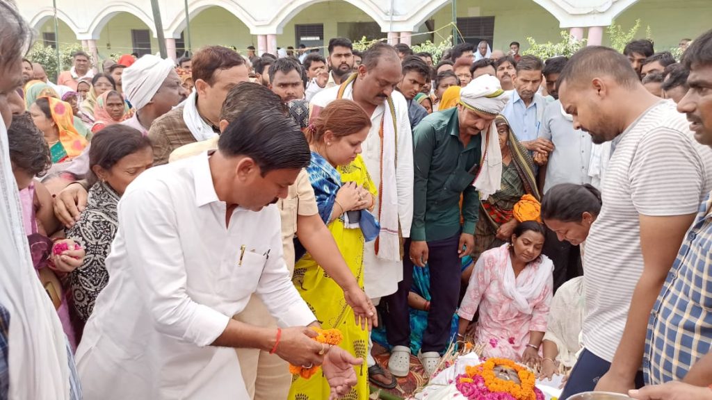 बिधूना-औरैया । औरैया जिले की बिधूना विधानसभा क्षेत्र से विधायक एवं एमएलसी रहे पूर्व राज्यमंत्री विनय शाक्य को बीती रात्रि अचानक हृदयाघात के चलते उपचार के लिए बिधूना लाया गया जहां चिकित्सकों ने देखते ही उन्हें मृत घोषित कर दिया। जैसे ही यह जानकारी लोगों को हुई तो रविवार को उनके भटौरा स्थिति आवास पर भारी जनसैलाब उमड़ पड़ा ।भारी संख्या में लोगों ने उनके पार्थिव शरीर पर पुष्पांजलि अर्पित कर श्रद्धांजलि दी।