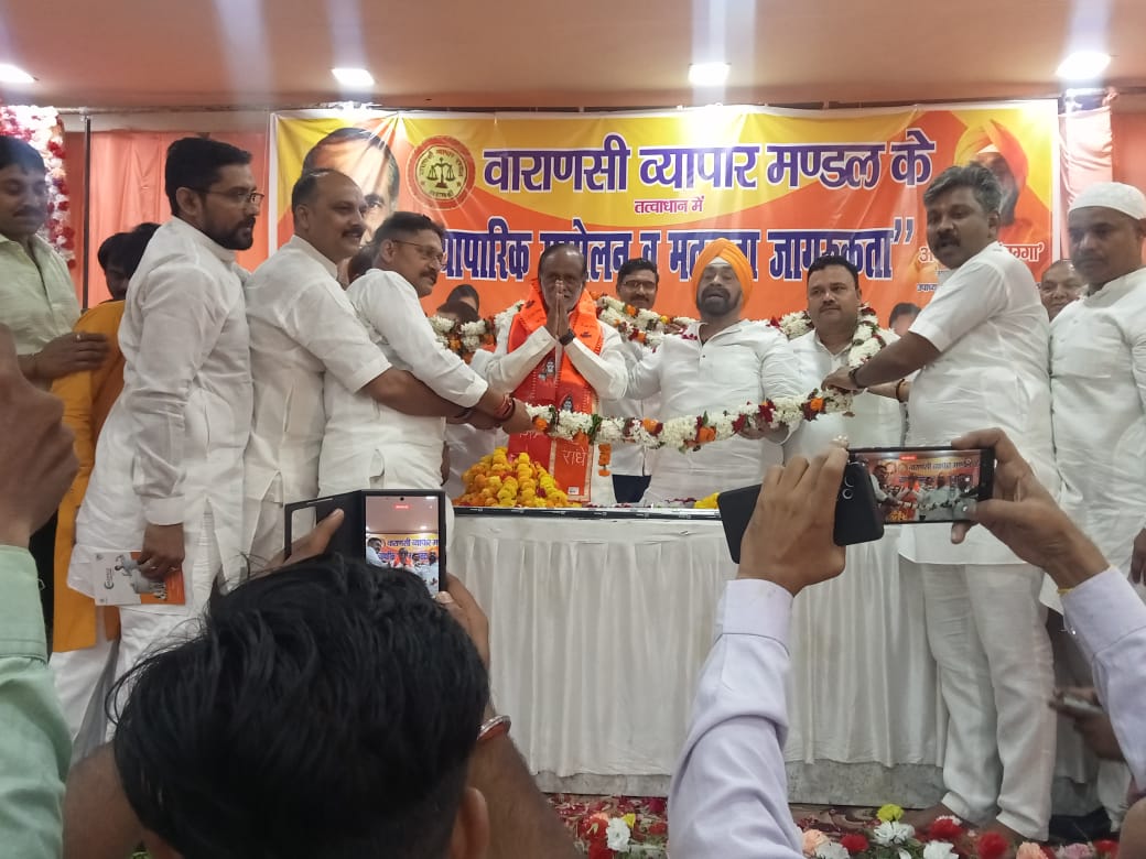 वाराणसी व्यापार मण्डल के तत्वाधान में आज दिनांक 26.5 2024 दिन रविवार को एक व्यापारिक सम्मेलन व मतदाता जागरूकता कार्यक्रम के. डी. आर. बक्वेट हॉल नाटी इमली में अध्यक्ष अजीत सिंह बग्गा और महामंत्री कविंद्र जायसवाल के अध्यक्षता एवं नेतृत्व में हुआ जिसमें मुख्य अतिथि के रूप में डॉक्टर के लक्ष्मण जी सांसद राज्य मंत्री राष्ट्रीय अध्यक्ष भाजपा ओबीसी मोर्चा विशिष्ट अतिथि के रूप में राजस्थान विधायक गोपाल शर्मा जी माननीय रविंद्र कश्यप जी राज्य मंत्री स्वतंत्र प्रभार एवं प्रमुख रूप से जितेंद्र कुश कुमार तिवारी समाजसेवी मोहसिन राजा सदस्य विधानपरिषद रमेश निरंकारी मनोज मद्धेशिया अध्यक्ष फूलपुर करिख्यावा व्यापार मंडल सभी ने एकमत से कहा की काशी दुनिया से न्यारी नगरी है जो हमेशा दुनिया को संदेश दिया है आदिकाल से और इस बार भी काशी की जनता नें मन बना लिया है की इस बार काशी की धरती से शत प्रतिशत मतदान करने का विभिन्न सामाजिक संस्थाएं धार्मिक संस्थाएं व्यापारिक संस्थाएं व्यापार मंडल सभी के रहनुमाओं का एक उद्देश्य है ज्यादा से ज्यादा वोटिंग हो समाज में पहले के अपेक्षा जागरूकता बढ़ी है समाज में चेतना बढ़ी है पहले दुनिया में आतंकवाद था कश्मीर का आतंकवाद था कश्मीर में पत्थर बाजी होती थी आए दिन व्यापारी लूट लिए जाते थे देश व प्रदेश में जैसे जंगल राज चल रहा था देश का सभी व्यक्ति यह मान बैठा था इस देश का कुछ नहीं हो सकता लेकिन विगत 10 वर्षों से यह दिखाई देने लगा है कि एक क्षेत्र में नहीं अपितु समाज के सभी क्षेत्र में विकास का कार्य होने लगा है लोगों में उत्साह का वातावरण है आम जनता राष्ट्रीय के बारे में सोचने लगी है वह समझ चुकी है कि राष्ट्र हित ही सर्वोपरि हित है लोग उत्तर प्रदेश का मजाक उड़ाते थे और कहते थे कि उल्टा प्रदेश है लेकिन अब यह उत्तम प्रदेश बन कर सिद्ध कर दिया कि लॉ और ऑर्डर के मामले में इससे बढ़िया प्रदेश कोई नहीं है यह केवल इसीलिए मुमकिन हुआ क्योंकि हमारे सेंट्रल के नेतृत्व में डबल इंजन की सरकार अपना कार्य बखूबी से निभा रही है और जब नेतृत्व अच्छा होता है तो उसके अधीन सभी कार्य अच्छे तरीके से होते हैं पहले हर कस्बे हर मोहल्ले गुंडो की रंगबाजों की माफिया की अपनी सरकार चलती थी, लूट हत्या डकैती बलात्कार यह आम बात हुआ करती थी लोग सोचते थे यह ऐसे ही चलता रहेगा व्यापारियों से फिरौती मांगना आम था लेकिन यह योगी के सरकार नें यह दिखा दिया कि किसी सरकार की इच्छा शक्ति दृढ़ निश्चय अगर हो तो यह सभी कानून विरोधी और देश विरोधी कार्य बंद हो सकते हैं पहले माफिया से जुड़कर जो हमारे युवा समाज थी युवा शक्ति थी वह अपने को गौरववान्वित महसूस करता था और सोचता था कि हमारा भविष्य इसी में है लेकिन आज का युवा शक्ति य