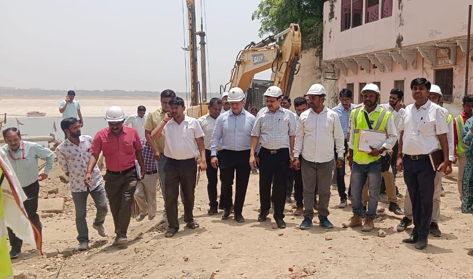 मंडलायुक्त ने हरिश्चन्द्र घाट पुनर्विकास के कार्यों का निरीक्षण किया।
