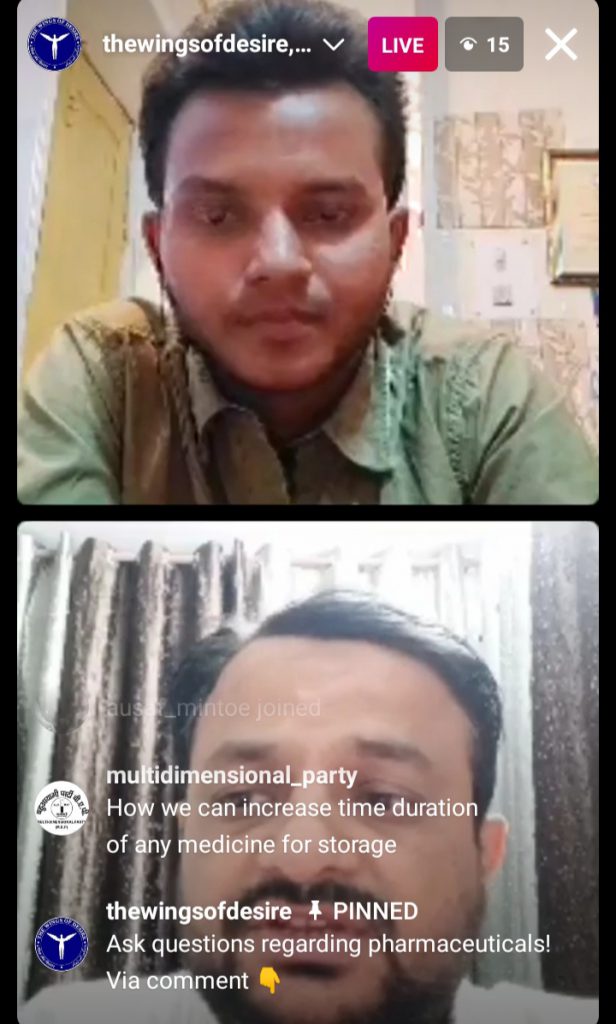 विश्व मलेरिया दिवस के अवसर पर उत्तर प्रदेश के अलीगढ़ से स्थापित विंग सॉफ्ट डिजायर एनजीओ के द्वारा इंस्टाग्राम के माध्यम से ऑनलाइन फार्मेसी फार्मासिटीकल रसायन औषधीय महत्व पर उत्तर प्रदेश के विशेष ख्याति प्राप्त एरा विश्वविद्यालय के प्रोफेसर डॉ मोहम्मद फहीम खान के द्वारा महत्वपूर्ण व्याख्यान दिया गया प्राप्त जानकारी के अनुसार डॉक्टर फहीम खान एरा विश्वविद्यालय के बायो तकनीकी विभाग का रसायन विभाग के प्रोफेसर हैं जिनके द्वारा विश्व के विभिन्न उच्च स्तर के जर्नलों में अनेक प्रकार के शोध पत्र उच्च गुणवत्ता के इंपैक्ट फैक्टर में प्रकाशित किए गए हैं और नेचुरल प्रोडक्ट पर एक विशेष पकड़ बना रखी है जिनकी सहायता से फार्मेसी से जुड़े हुए अनेक प्रकार के छात्र-छात्राओं को के द्वारा इंस्टाग्राम ऑनलाइन लाइव व्याख्यान से जुड़कर ड्रग डिजाइन ड्रग थेरेपी ड्रग डिलीवरी से संबंधित अनेक प्रकार की जानकारी उपलब्ध कराई गई जिसमें डॉक्टर साहब ने औषधि के निर्मित होने से लगने वाले एग्रीडेंट से लगाकर औषधि खुराक औषधि भंडारण औषधि स्पायरी डेट औषधि के गुण क्लासिफिकेशन मकैनिक आदि को समझाते हुए छात्र छात्राओं के द्वारा पूछे गए विभिन्न प्रकार के प्रश्नों को बताते हैं विभिन्न महत्वपूर्ण जानकारियां उपलब्ध कराई गई जिसमें यह भी बतलाया गया कि कोई भी शोधक वैज्ञानिक किस प्रकार से किसी भी औषधि का सिंथेसिस एक चैलेंज को फेस करते हुए लगातार निरंतर सालों प्रयास करके सिंथेसिस टारगेटेड ड्रग का फॉरमेशन कर पाता है और भविष्य में फार्मास्यूटिकल इंडस्ट्री किस तरीके से तेजी के साथ ग्रो करने वाली है और फार्मेसी की इंडस्ट्री प्रत्येक वर्ष कितने का व्यापार कर रही है फार्मेसी के क्षेत्र में छात्रों का भविष्य किस प्रकार से हितेषी साबित हो रहा हैआदि आदि महत्वपूर्ण ज्ञान के लिए बहुआयामी संस्था व बहुआयामी समाचार परिवार डॉक्टर साहब की आभारी है।