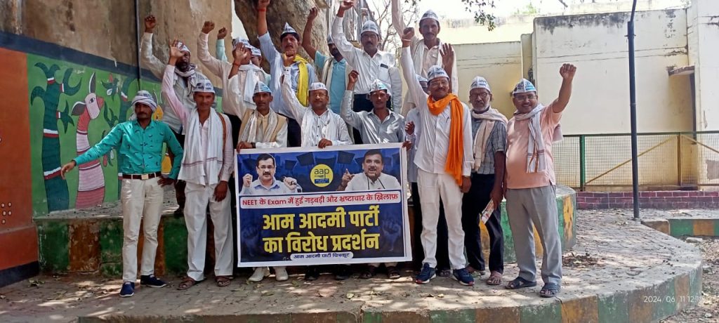 चित्रकूट : NEET के Exam में हुई गड़बड़ी और भ्रष्टाचार के ख़िलाफ़ आज चित्रकूट जनपद में जिलाध्यक्ष सन्तोषी लाल शुक्ला जी के नेतृत्व में AAP कार्यकर्ताओं एवं पदाधिकारियों ने विरोध प्रदर्शन कर राष्ट्रपति को संबोधित ज्ञापन उप जिलाधिकारी महोदय को सौंपा।