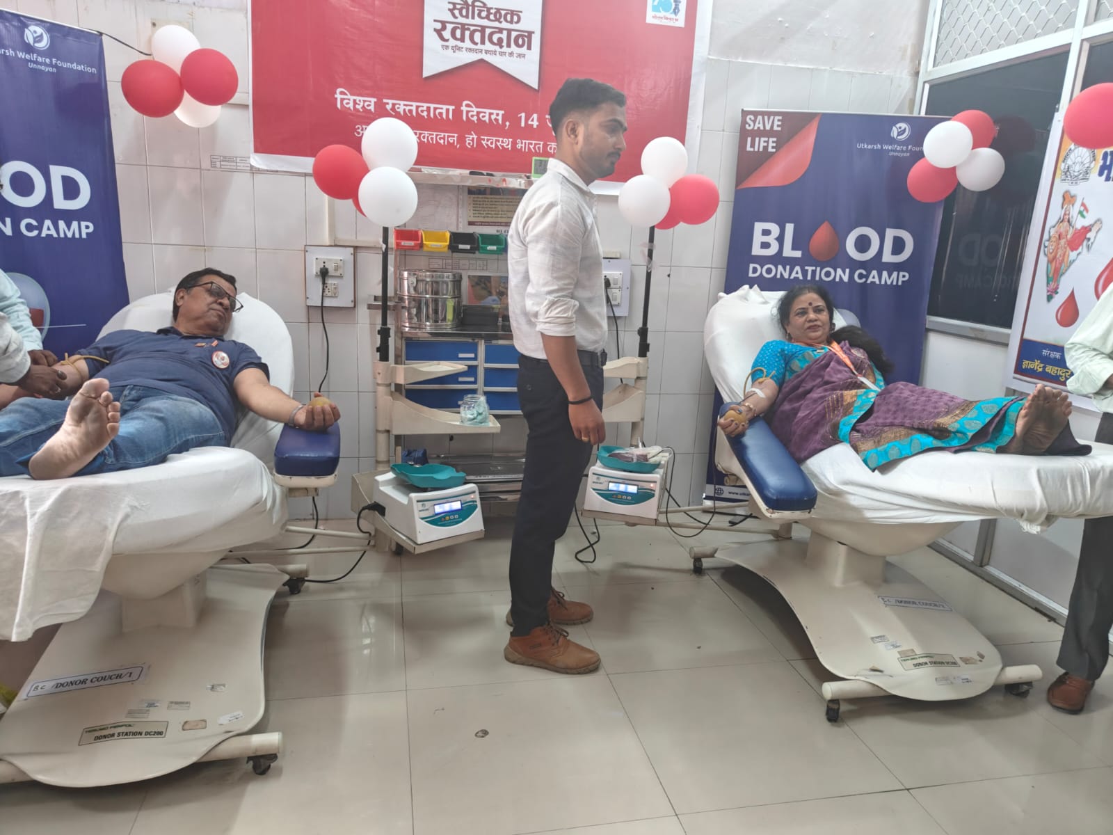 वाराणसी :- भारत विकास परिषद सृजन शाखा द्वारा अध्यक्षा शशी श्रीवास्तव व सचिव डा० रमा सिंह के तत्वाधान में अमर उजाला द्वारा विश्व रक्तदान दिवस पर पं० दीनदयाल उपाध्याय राजकीय चिकित्सालय पाण्डेयपुर वाराणसी में आयोजित रक्तदान शिविर में भाग लिया गया |