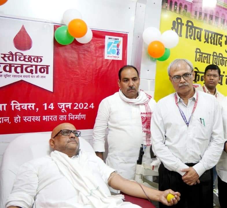वस्तुतः उत्तर प्रदेश कांग्रेस कमेटी के अध्यक्ष श्री अजय राय के नेतृत्व में आज विश्व रक्तदान दिवस के अवसर पर दैनिक समाचार पत्र "अमर उजाला" के बैनर तले कबीर चौरा स्थित श्री शिव प्रसाद गुप्त मंडलीय चिकित्सालय परिसर में आयोजित "रक्तदान महा अभियान" के तहत रक्तदान किया। उनके साथ बड़ी संख्या में स्थानीय कांग्रेस नेताओं और कार्यकर्ताओं ने भी बढ़ चढ़ कर रक्तदान किया। विश्व रक्तदान दिवस पर आयोजित आज के इस रक्तदान महा अभियान में प्रदेश कांग्रेस कमेटी के अध्यक्ष श्री अजय राय जी के साथ जिला एवं महानगर कांग्रेस कमेटी के सम्मानित अध्यक्ष राजेश्वर सिंह पटेल,राघवेन्द्र चौबे,मकसूद खां, दुर्गाप्रसाद गुप्ता ,राजीव गौतम, मनीष मोरोलिया,सफक रिजवी,विकास सिंह,अनुपम राय,अब्दुल हमीद डोडे,मनू वर्मा,कुँवर बबलू बिन्द, किशन यादव,दुर्गा साहनी,अनिल पटेल,कृष्णा गौड़, समेत बड़ी संख्या में कांग्रेस के जिला एवं महानगर कमेटी पदाधिकारियों एवं कार्यकर्ताओं ने भी रक्तदान के इस कार्यक्रम में बढ़ चढ़ कर सहभागिता की ।