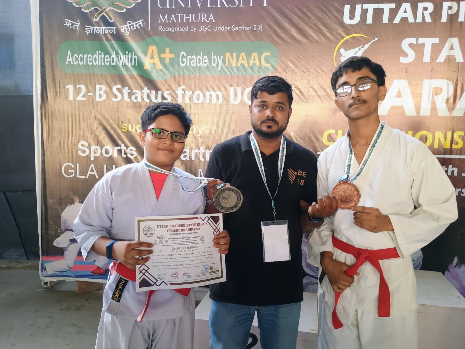 विगत दिनों मथुरा में हुए स्टेट कराटे चैंपियनशिप में सुरक्षा कराते अकादमी के बच्चों ने हासिल किए पदक।